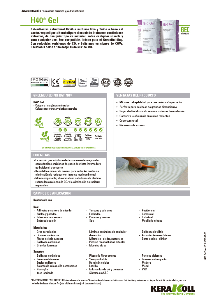 Gel-adhesivo estructural flexible multiuso tixo y fluido a base del exclusivo geoligante Kerakoll para el encolado, incluso en condiciones extremas, de cualquier tipo de material, sobre cualquier soporte y para cualquier uso. Eco-compatible. Idóneo para el GreenBuilding.