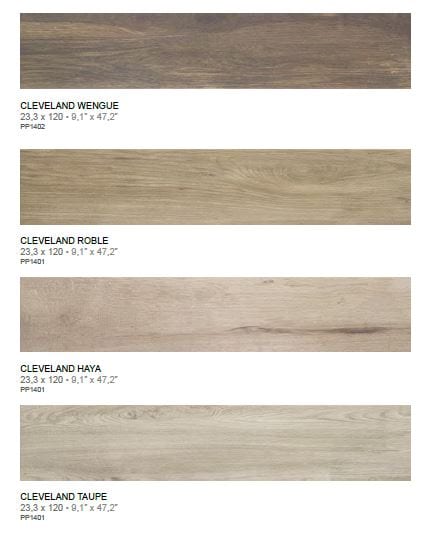 16,00 € / m2 (IVA Incluido)La Serie Cleveland es un azulejo porcelánico imitación madera con acabado natural, disponible en formato 23×120 cm. Los colores disponibles son Haya, Roble, Taupe y Wengue. Este azulejo es ideal para cualquier reforma, proporcionando un aspecto cálido y elegante a cualquier espacio interior, combinando estilo y durabilidad.