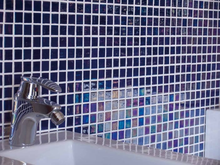 Gresite Acquaris Jacinto, es un gresite para piscinas y baños. Con destonificación de color azul oscuro. Tamaño de la malla 31,6×31,6 , gresite 2,5×2,5. Acabado brillo iridiscente. Ideal para piscinas o zonas húmedas y perfecto para revestimientos y pavimentos en interiores y exteriores. Aporta un toque elegante y sofisticado a cualquier espacio.