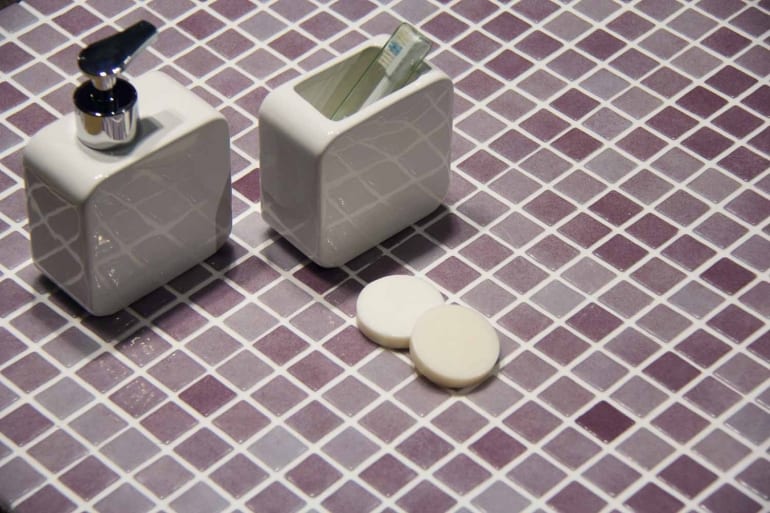La Serie Gresite Lila ofrece un aspecto vibrante y elegante para piscinas y zonas húmedas. Con su formato de malla 31,6×31,6 cm y piezas de gresite 2,5×2,5 cm, proporciona una cobertura uniforme y precisa.