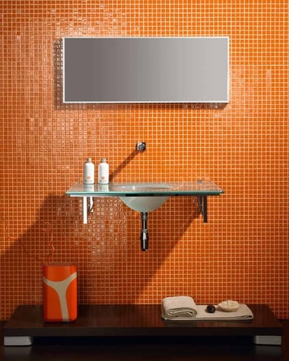 El acabado en brillo del gresite Naranja refleja la luz, creando una sensación de amplitud y luminosidad. Garantizando una uniformidad en el tono y una apariencia cohesiva en toda la instalación.