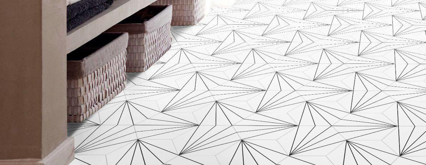 La Serie ASTER es u azulejo porcelánico imitación hidráulico en formato 25×25 hexagonal, Presenta un acabado mate.