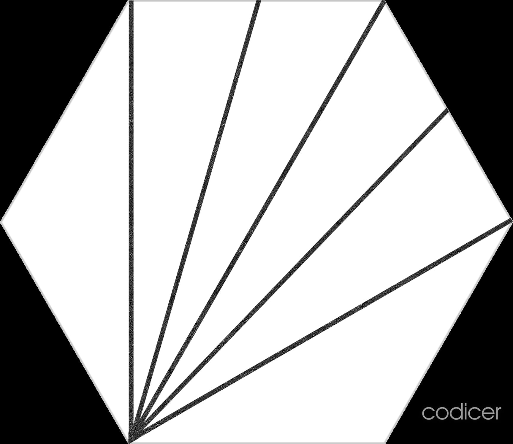Serie ASTER . Azulejo porcelánico imitación hidráulico en formato 22×25 hexagonal, Presenta un acabado mate.