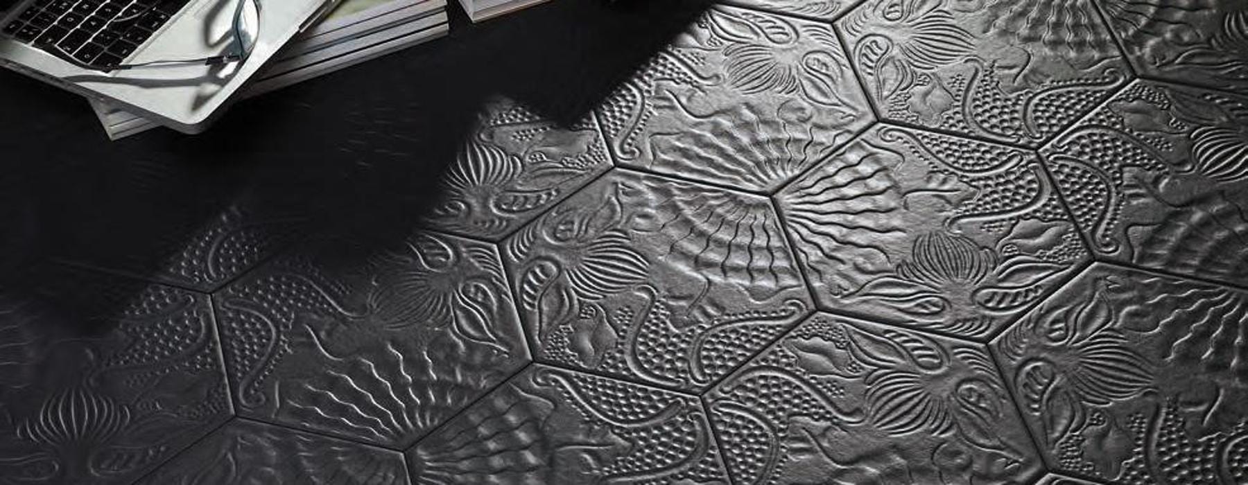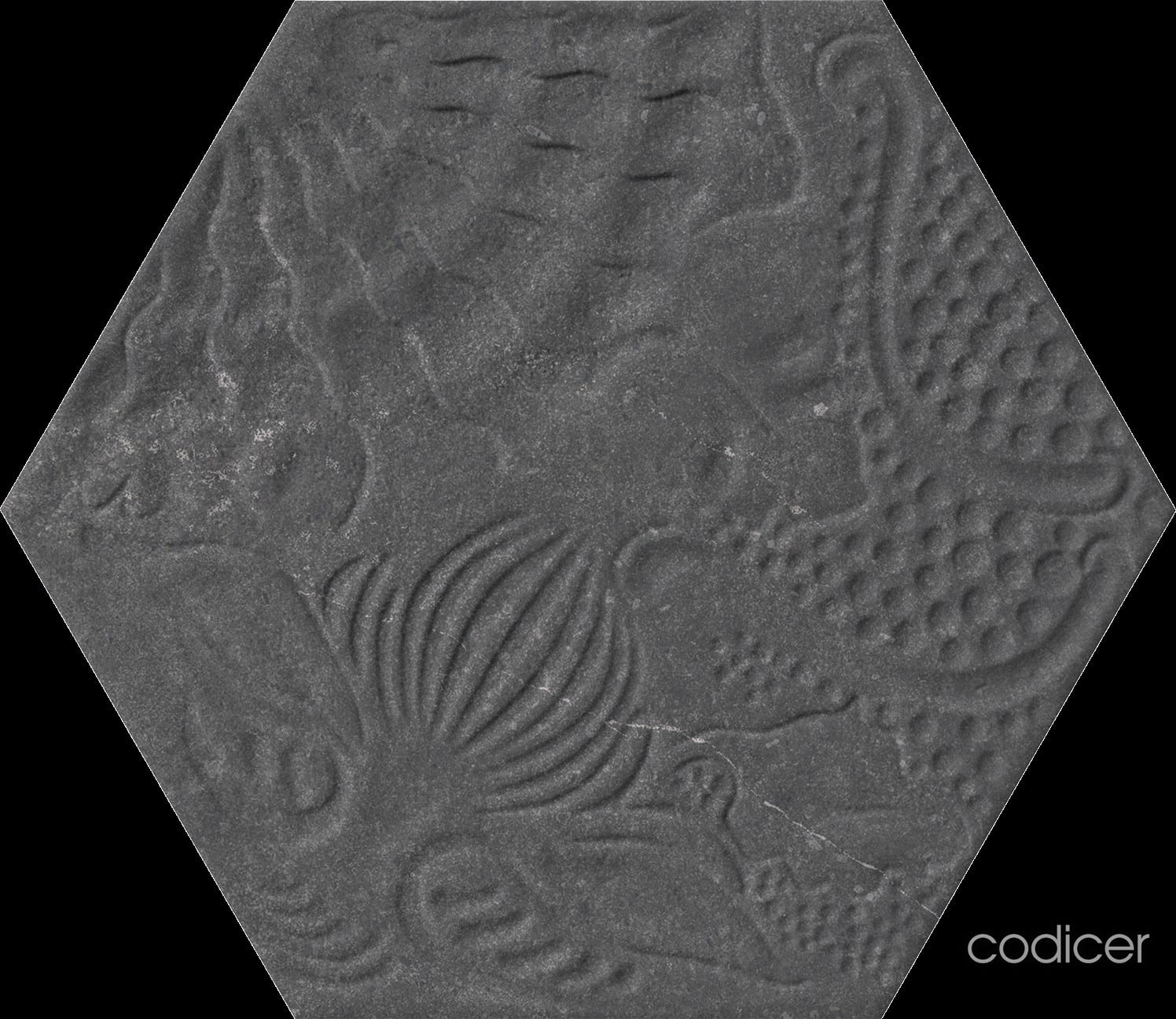 La Serie GAUDI es un azulejo porcelánico tipo hidráulico en formato 22×25 hexagonal, presenta un acabado mate y color Black. Dispone de decorado con relieve.