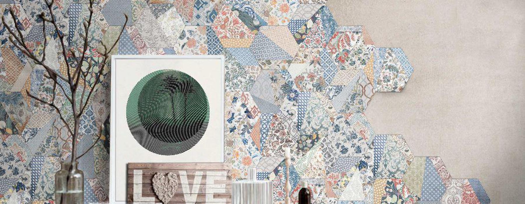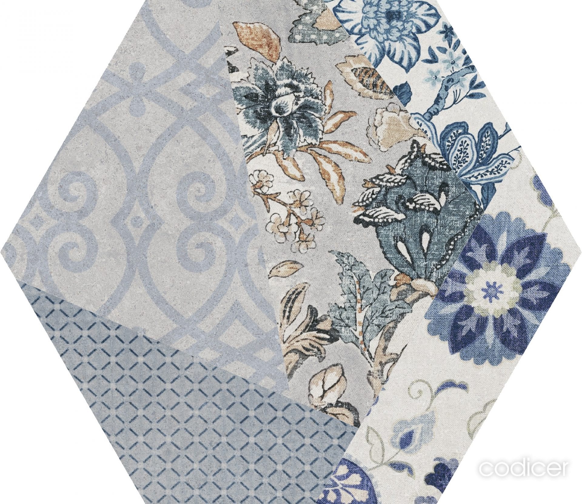 Serie ANAIS . Azulejo Porcelánico imitación hidráulico en formato 22×25 hexagonal, Presenta un acabado mate.