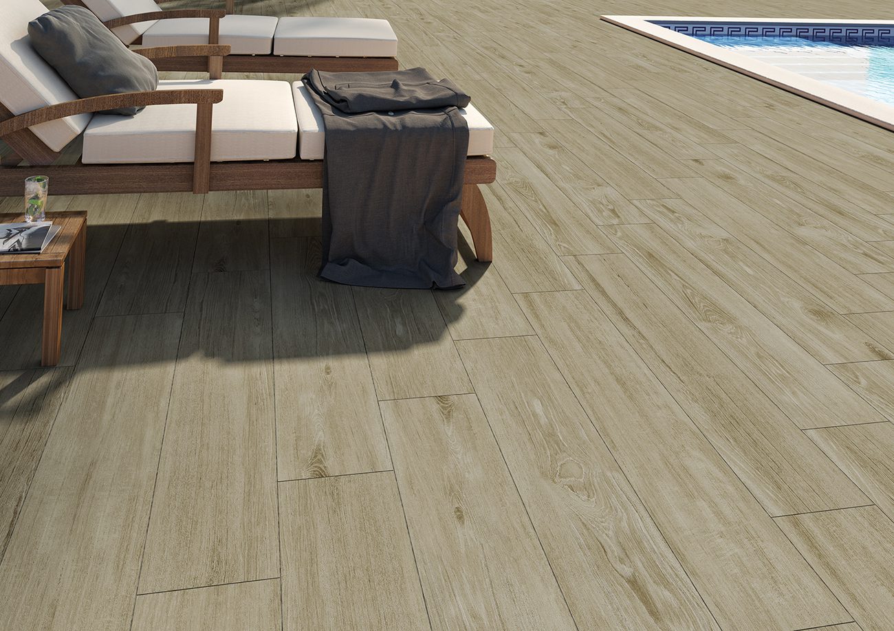 Aporta todas las ventajas de la madera natural gracias al porcelánico pero sin los inconvenientes de esta.