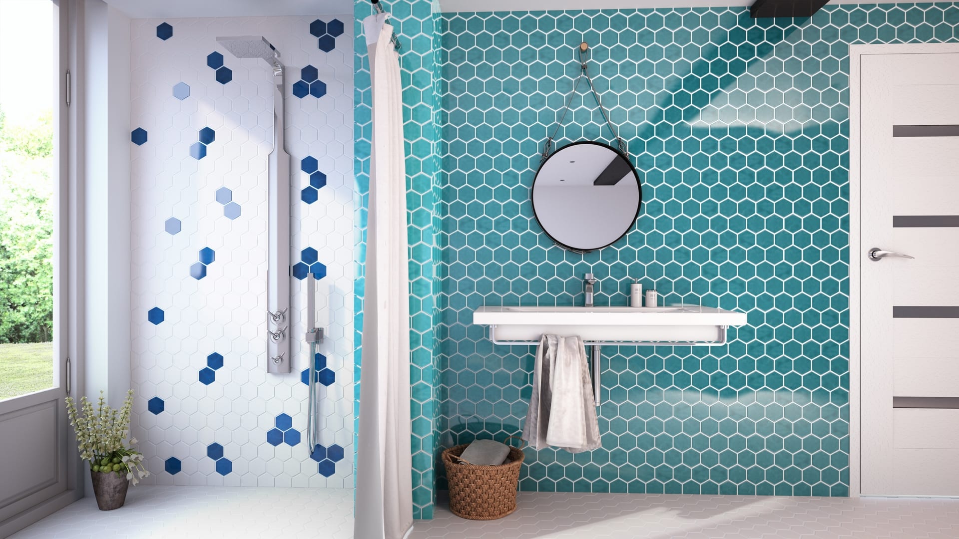 Diseñamos la reforma del baño con colores aquamarine y atlantic de esta gama. El juego de colores y el brillo da sensación de baño moderno y amplio. Una formula perfecta para cambiar.