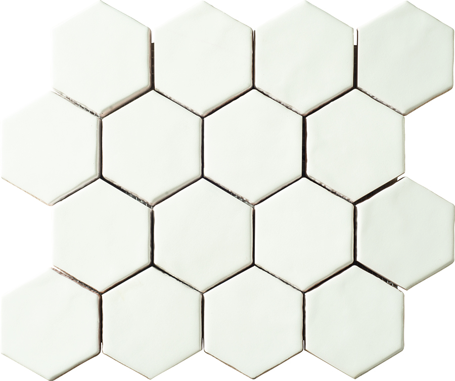 La Serie Art Decó es un Azulejo hexagonal de pasta blanca en formato 7,9×9,1 cm.