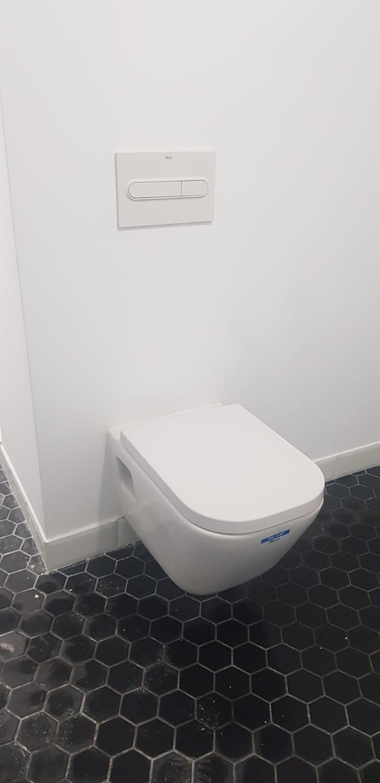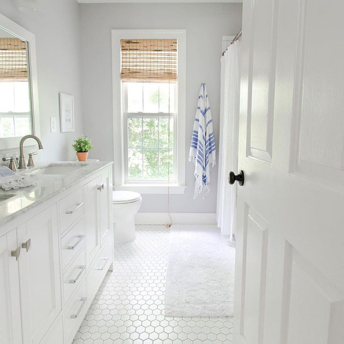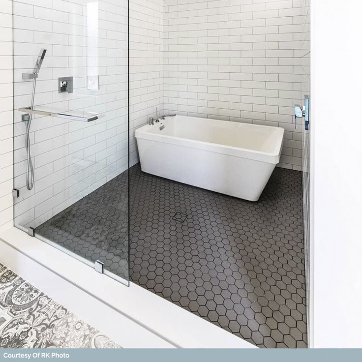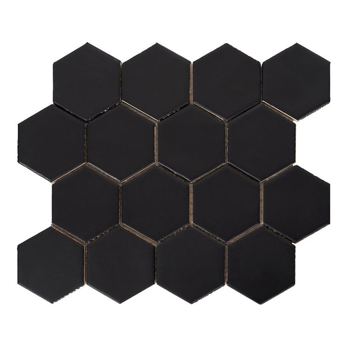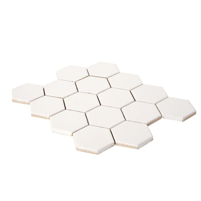 Es un pequeño azulejo hexagonal que se vende en mallas 28x32cm tipo mosaico, para facilitar y abaratar la colocación.