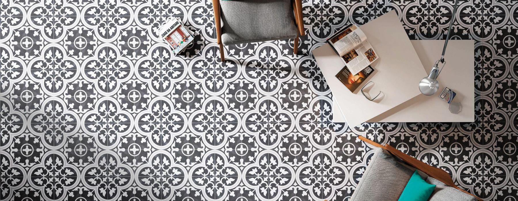 Serie ARTE . Azulejo Porcelánico imitación hidráulico en formato 25×25, Presenta un acabado mate.