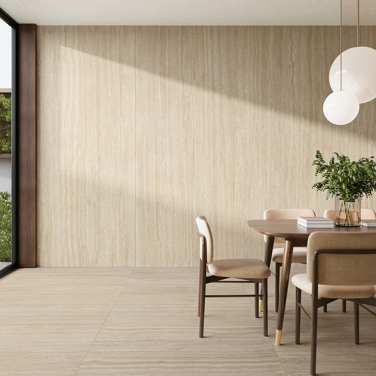 Con un formato generoso de 60×120 cm, esta serie es perfecta para crear superficies continuas que aporten una sensación de amplitud y lujo a cualquier ambiente.