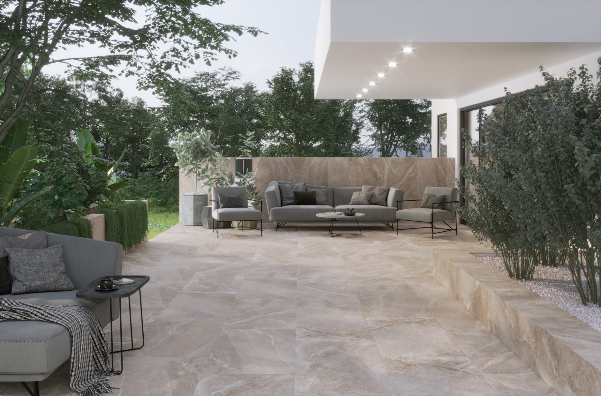 En los porcelánicos presenta el acabado SLIPSTOP, es cual es apto tanto para interiores como exteriores gracias a su textura suave pero a la vez antideslizante.