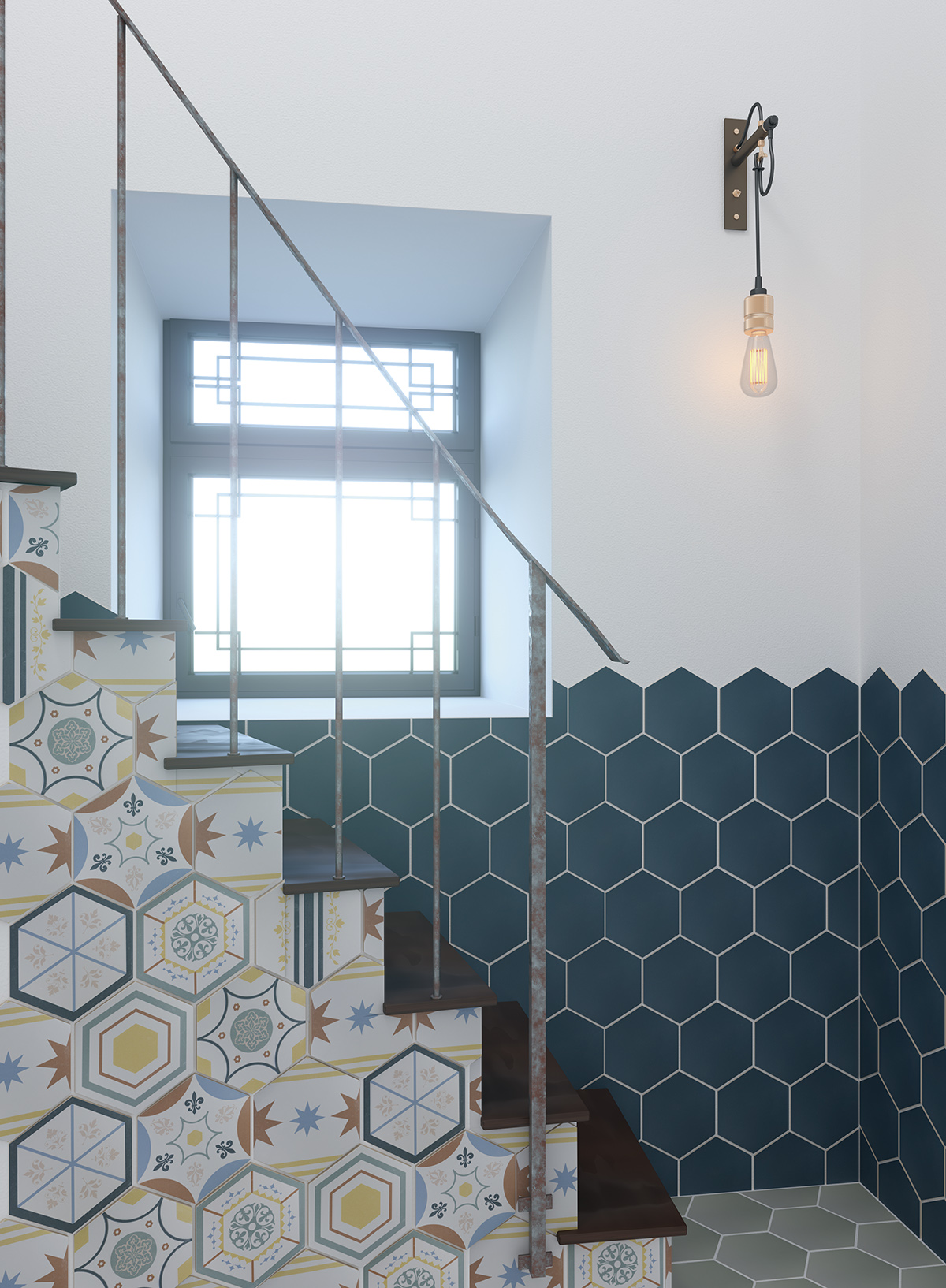 Azulejos hexagonales muy atrevidos y diferentes, lo hemso puesto en el suelo de la habitación de los niños.