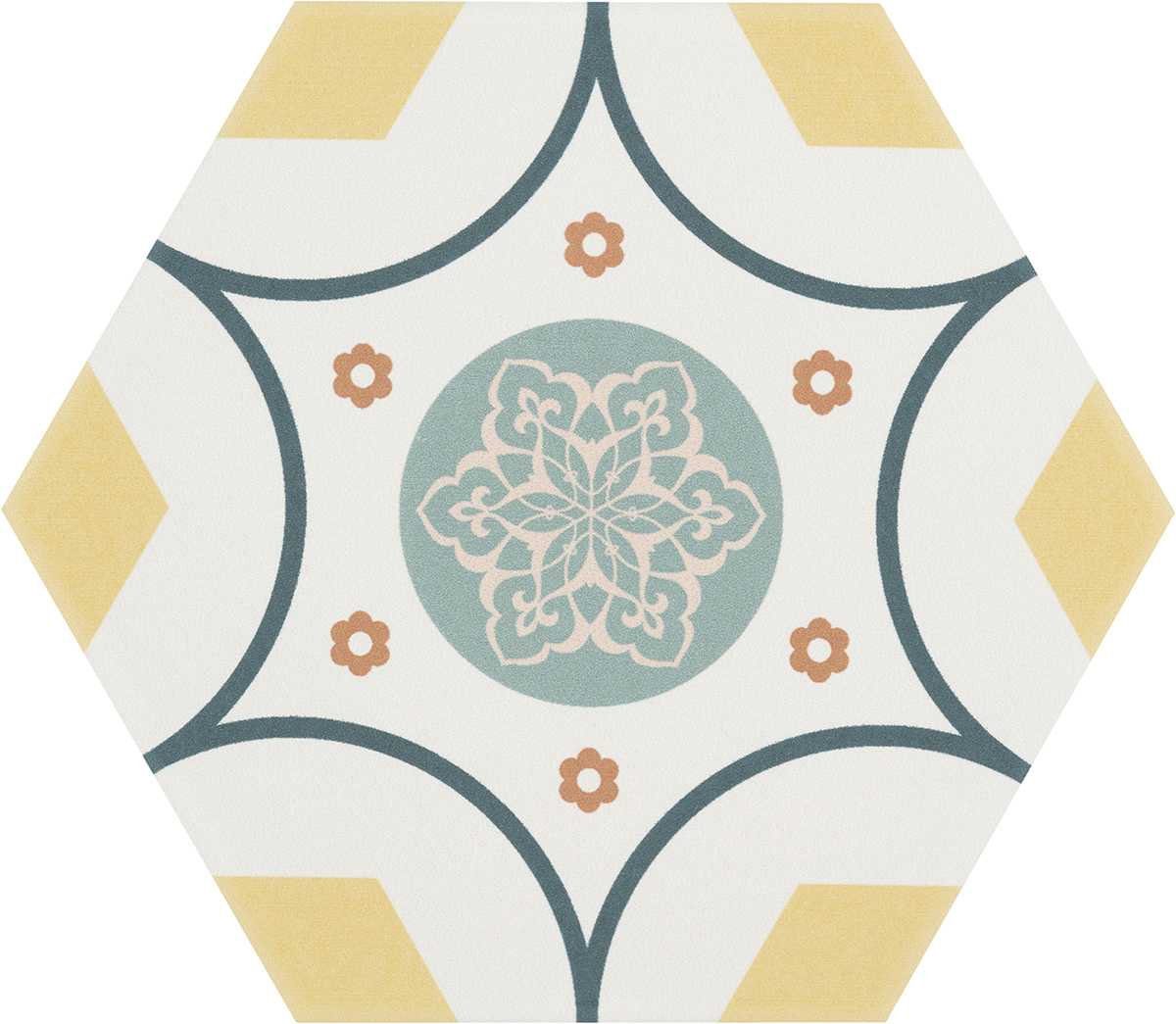 63,51 € – 78,32 € / m2 (IVA Incluido)La Serie BOOM es un azulejo porcelánico tipo hidráulico en formato 14×16 hexagonal, presenta un acabado mate, y esta disponible en los colores :