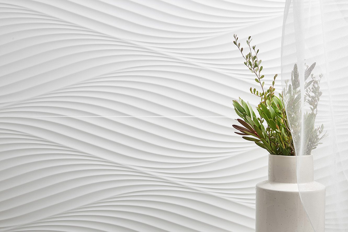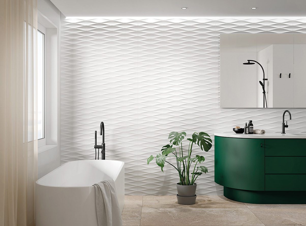 Más blanco y más suave. Nuevas técnicas de producción nos han permitido ser capaces de obtener un nivel de blancura hasta ahora imposible de conseguir, además de una suavidad superior muy buscada en los materiales que nos quedan a la altura de las manos. Por ello nuestra colección Cotton es una solución ideal para cualquier proyecto donde se busque la calidez y la amplitud visual del espacio. El decorado Diamond simula un rombo suavizado con líneas orgánicas. Con Waves tenemos esas formas sinuosas de las olas del mar. Suaves y dinámicas que nos generan espacios con un calmado movimiento. Fold es una propuesta decorativa que nos traslada a las dobleces de materiales maleables como la arcilla, el papel o el metal. En este caso nos aporta una sensación de trampantojo al evocar formas imposibles de realizar sobre un material tan duro y resistente como es la cerámica.