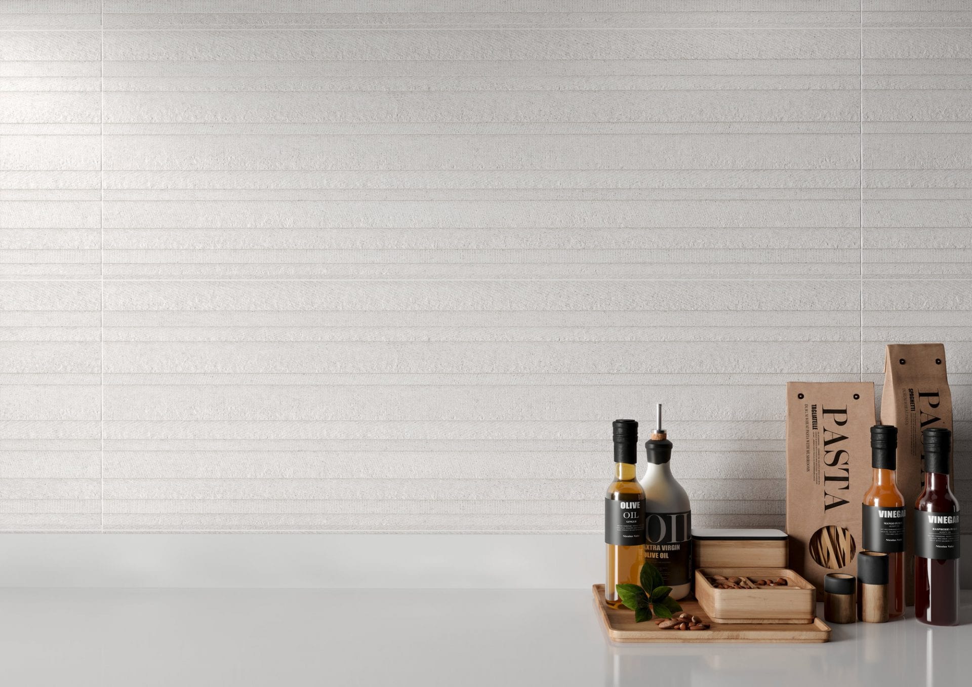Serie Erta. Azulejo de Pasta Blanca en formato 33,3×100 Rectificado y 25×75 sin Rectificar, revestimiento con acabado mate. Textura suave y trabajada, con relieve que aporta personalidad.