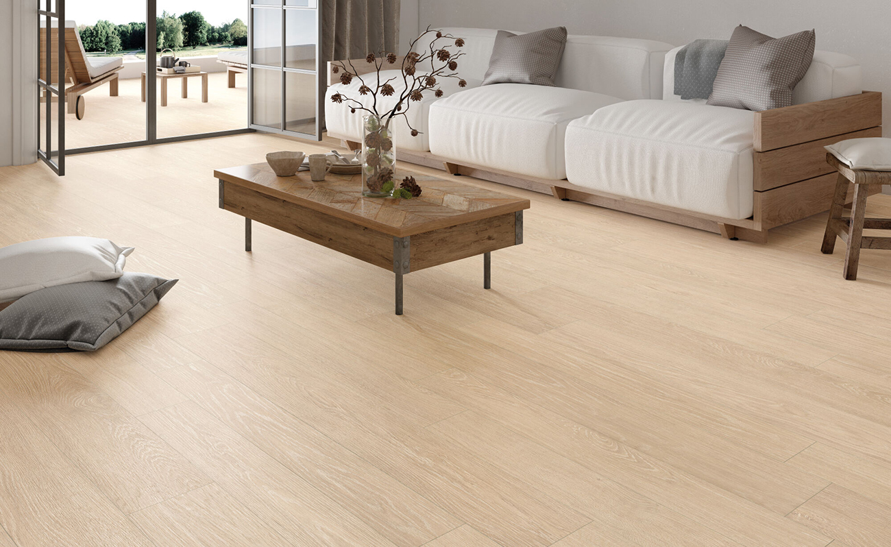 ESSENCE se distingue por su acabado natural y superficies rectificadas, que no solo embellecen el espacio sino también facilitan una instalación limpia y precisa, con juntas mínimas para una apariencia de madera continua y fluida. Esta colección es ideal para aquellos que buscan la belleza duradera de la madera con las ventajas del porcelánico: una resistencia superior y un mantenimiento sencillo.