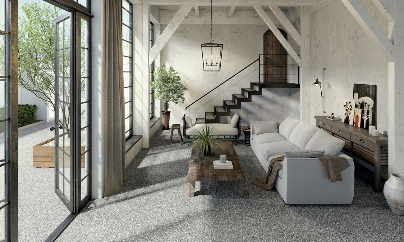Rediseñando el clásico terrazo, la Colección FS ROAD de Francisco Segarra ofrece una interpretación moderna y sofisticada de este material tradicional. En un impresionante formato de 90×90 cm y con un espesor de 9 mm, esta colección combina la estética atemporal del terrazo con las tecnologías cerámicas más avanzadas.