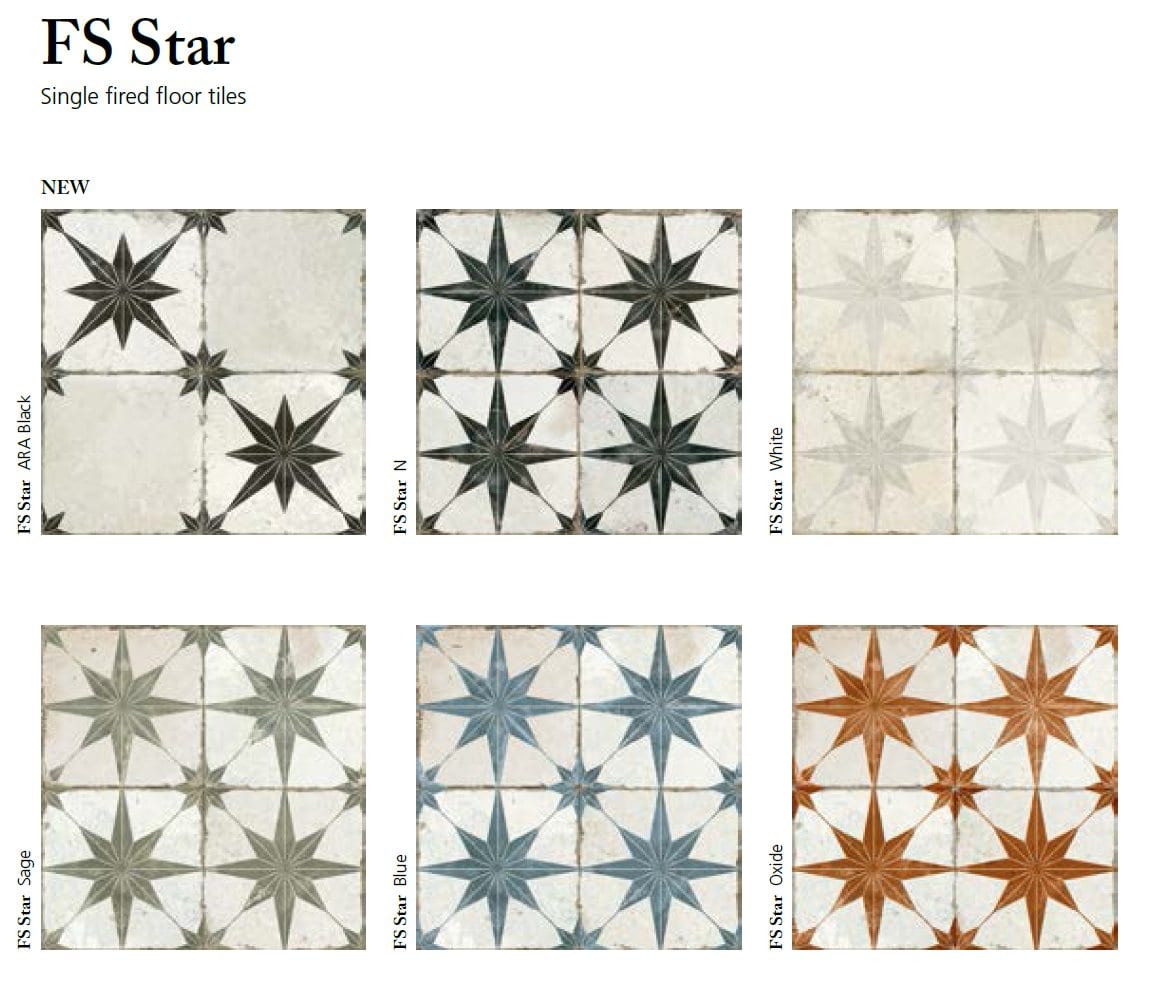 La Serie Francisco Segarra FS STAR es un azulejo de gres en pasta roja tipo hidráulico, disponible en formato 45×45 y con un acabado natural. Esta serie se destaca por su capacidad para aportar un toque vintage y elegante a cualquier estancia.