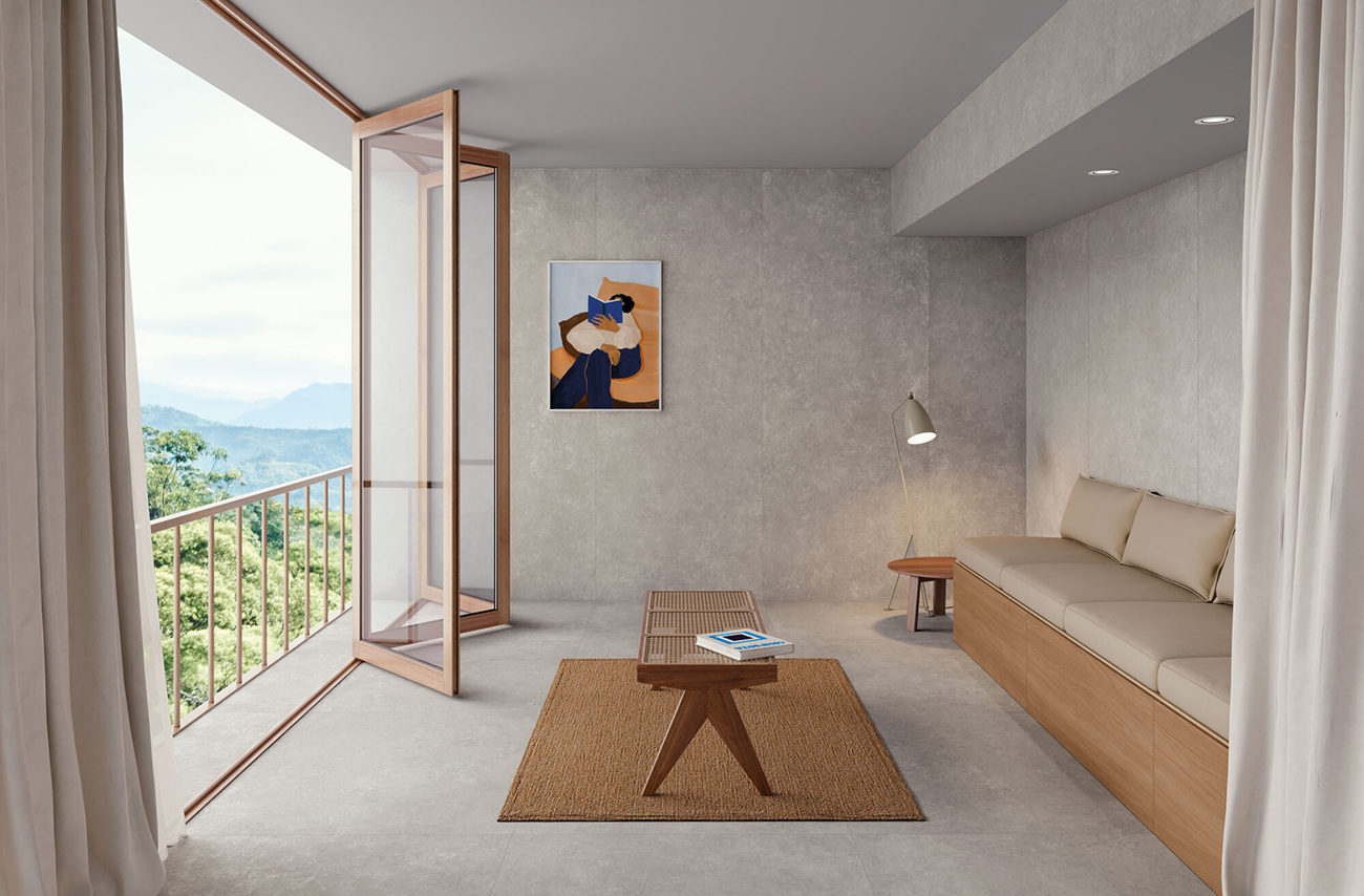 La utilización de la tecnología Shaped Tech ha permitido reproducir las sutiles imperfecciones y las características sales visibles en el cemento tradicional, añadiendo un nivel de detalle que eleva el material más allá de la simple imitación. Esta tecnología no solo mejora la textura y la apariencia visual del porcelánico, sino que también contribuye a la creación de espacios más amplios y luminosos gracias a su acabado continuo y sus colores uniformes.
