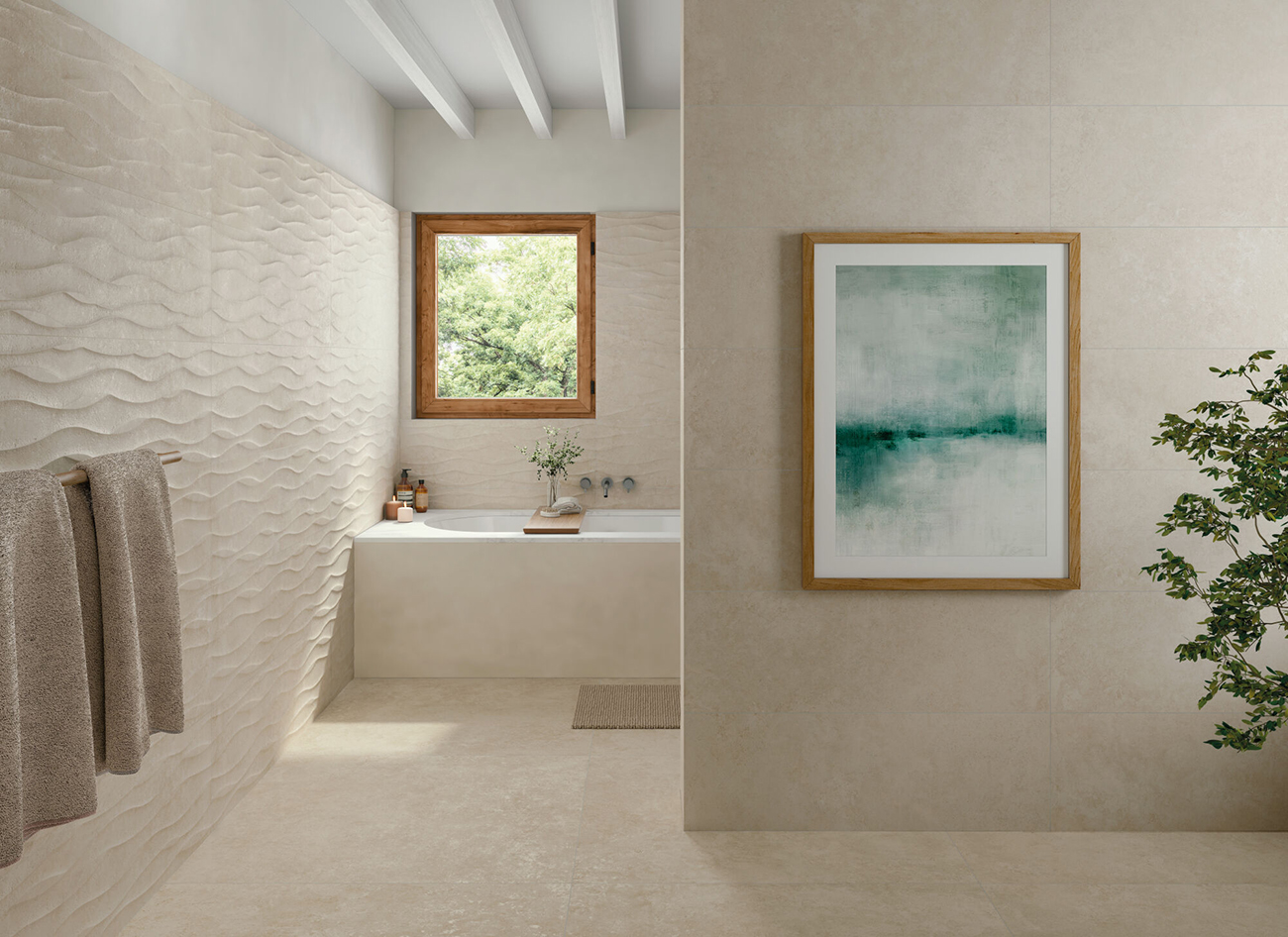 40,64 € – 43,10 € / m2 (IVA Incluido)La colección GROUND WALL es un revestimiento de pasta blanca en formato 33,3×100 cm con un espesor de 8.6 mm. Este revestimiento, con acabado natural y rectificado, expande la mítica colección Ground al ámbito de los revestimientos murales. Disponible en colores suavizados como white, silver y bone, aporta luminosidad a las paredes y un toque estético con su relieve ondulado que celebra la belleza de la imperfección.