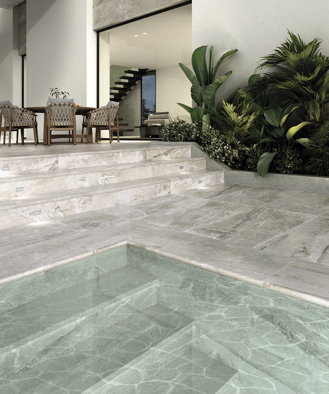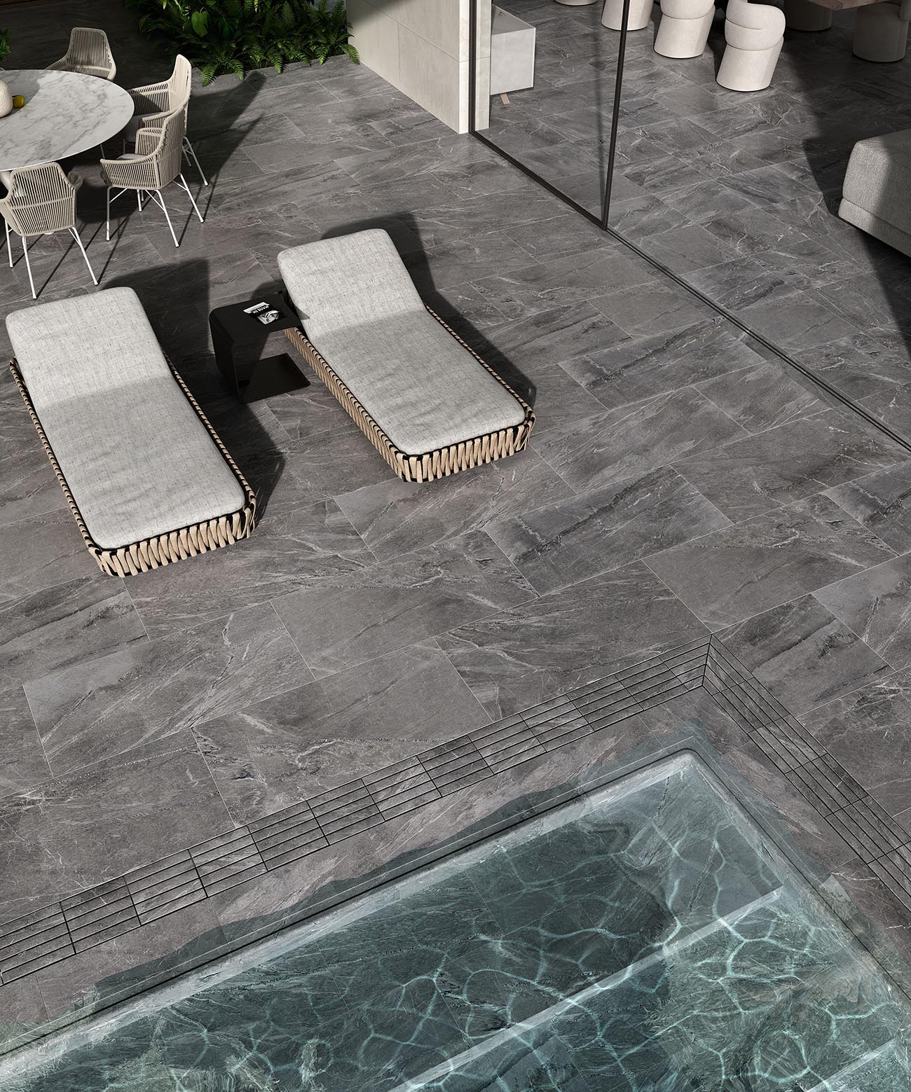Gracias a su fabricación en gres extrusionado y porcelánico, la Serie IMPERIAL ofrece una durabilidad excepcional y una resistencia al agua, siendo una opción excelente para cualquier estancia, escaleras e incluso zonas húmedas como piscinas. El acabado IN&OUT asegura una textura antideslizante, proporcionando seguridad sin renunciar a la estética refinada del mármol.