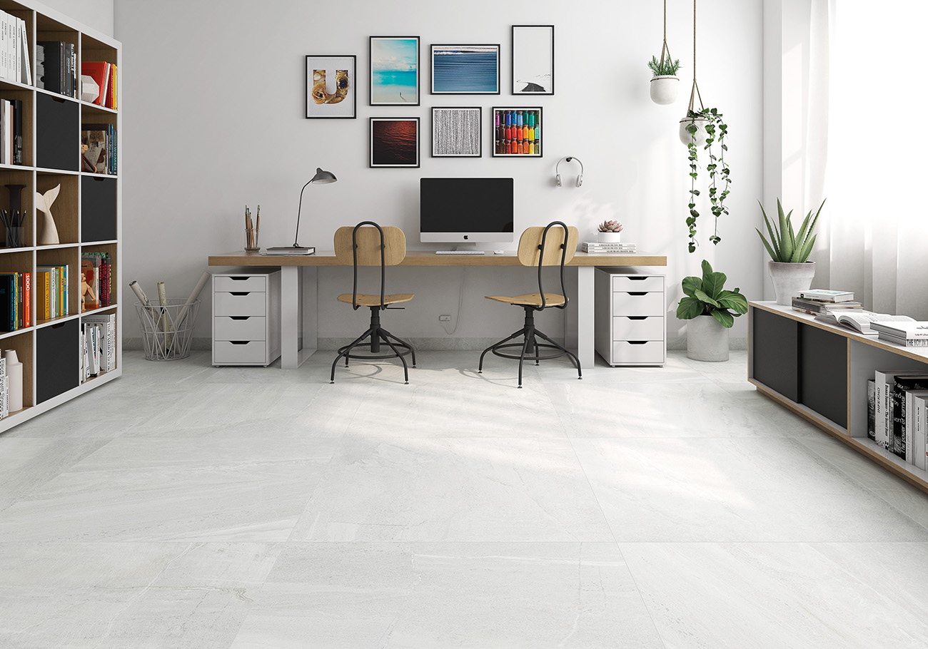Los pavimentos porcelánicos de la serie están disponibles en formatos de gran formato: 100×100 y 60×120, lo que facilita la creación de superficies continuas y modernas. Los colores seleccionados, white, grey, beige y taupe, ofrecen opciones neutras y atemporales que se adaptan a una amplia gama de estilos decorativos, desde los más contemporáneos hasta los más clásicos.