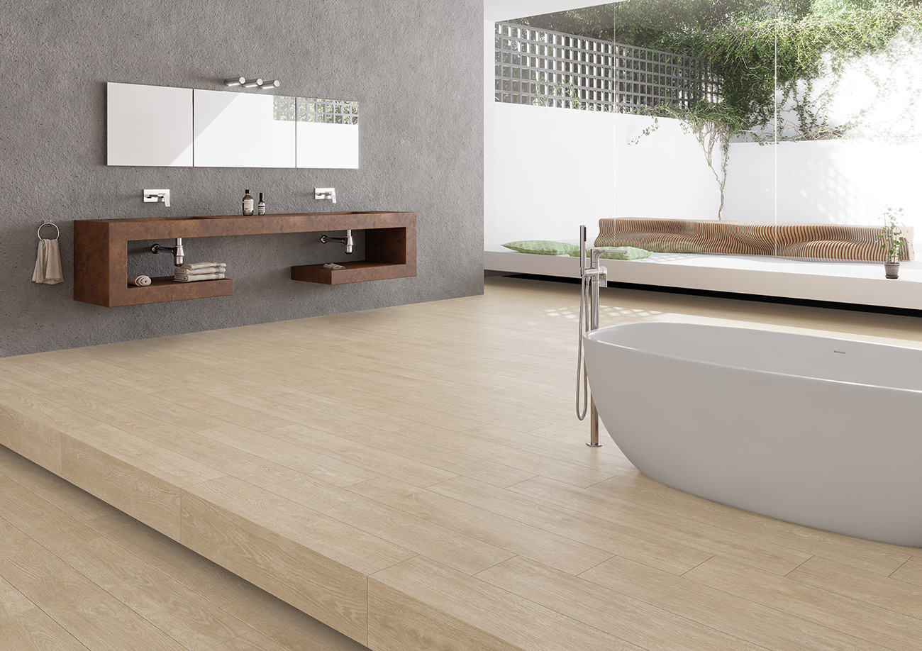 Disponible en formatos 23×120 cm y 30×150 cm en versiones rectificadas y 15×90 cm en formato no rectificado, la serie Larix ofrece versatilidad y múltiples opciones de instalación, adecuadas tanto para pavimentos como para revestimientos. Su acabado mate realza la textura de la madera, aportando una estética moderna y natural.