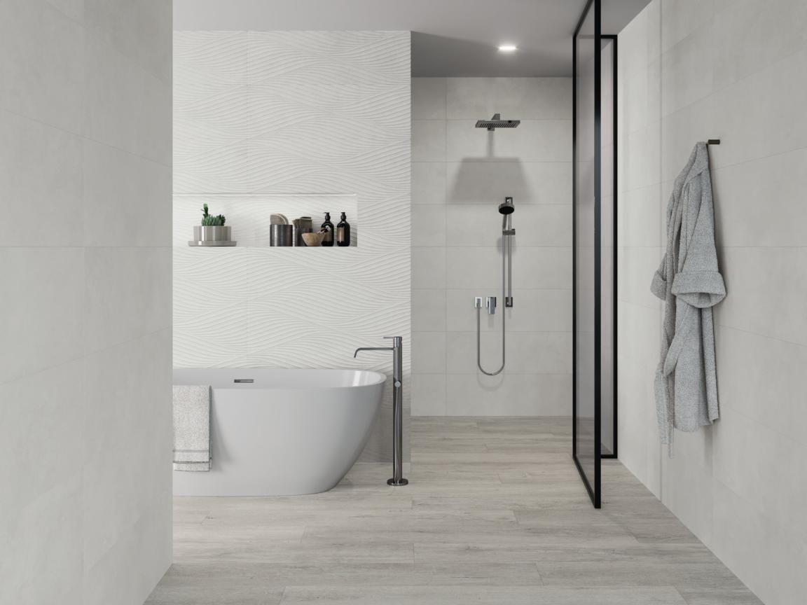 Presentamos el acabado ALL IN ONE. El All in One es la gran innovación técnica de la pasada feria de Cersaie. Donde presentamos superficies suaves con características antideslizantes R11/C3/A+B. Dentro y fuera del hogar con un solo producto: todo en uno. La sedosidad de la superficie de estas piezas genera una gran facilidad de limpieza, hasta ahora inimaginable en productos de estas características.