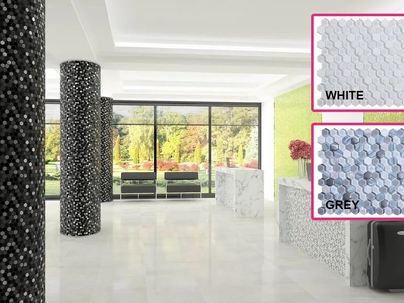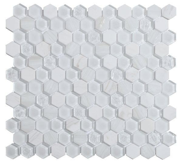 La Serie LIVING es un azulejo realizado con vidrio y mármol estilo mosaico, que se presenta en acabado mate con brillo, con formato 30×30. Está pensado para revestimientos de interiores.
