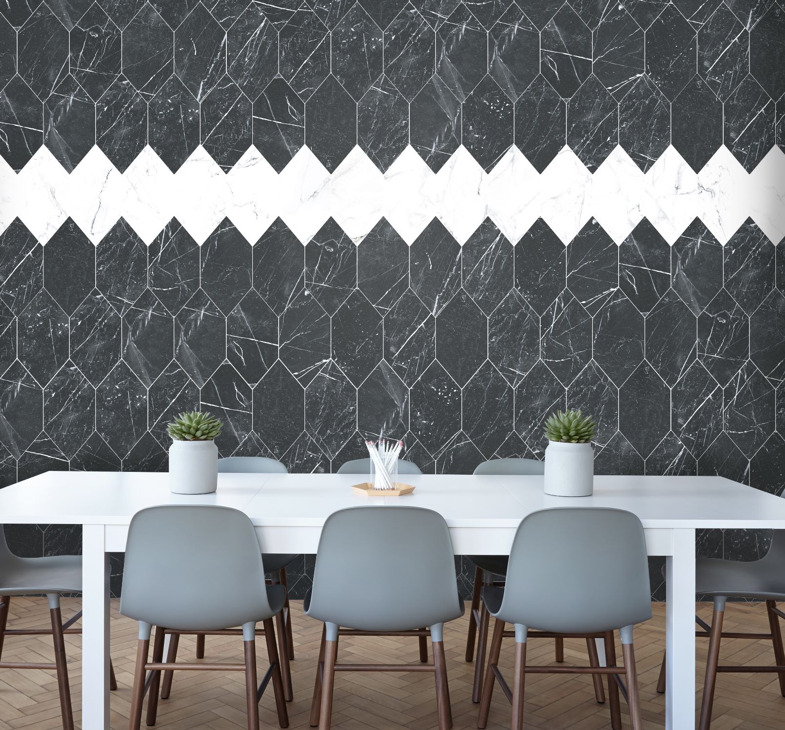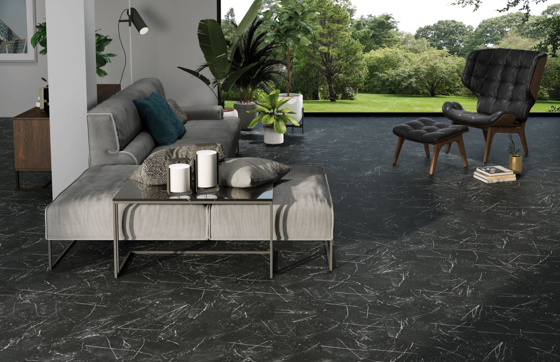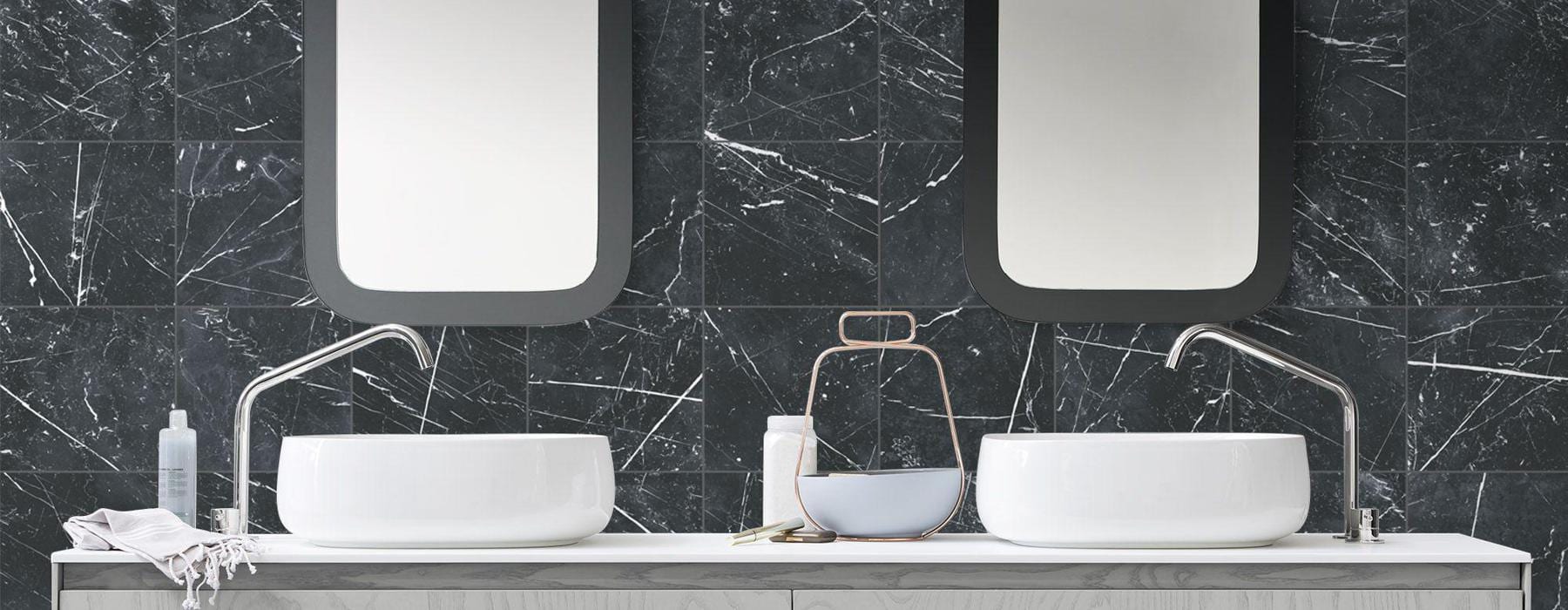 Serie MARQUINA. Azulejo porcelánico imitación mármol en formato 25×25, 25×25 hexagonal, 50×50, 50×50 modular y 66×66 , Presenta un acabado mate color MARQUINA.