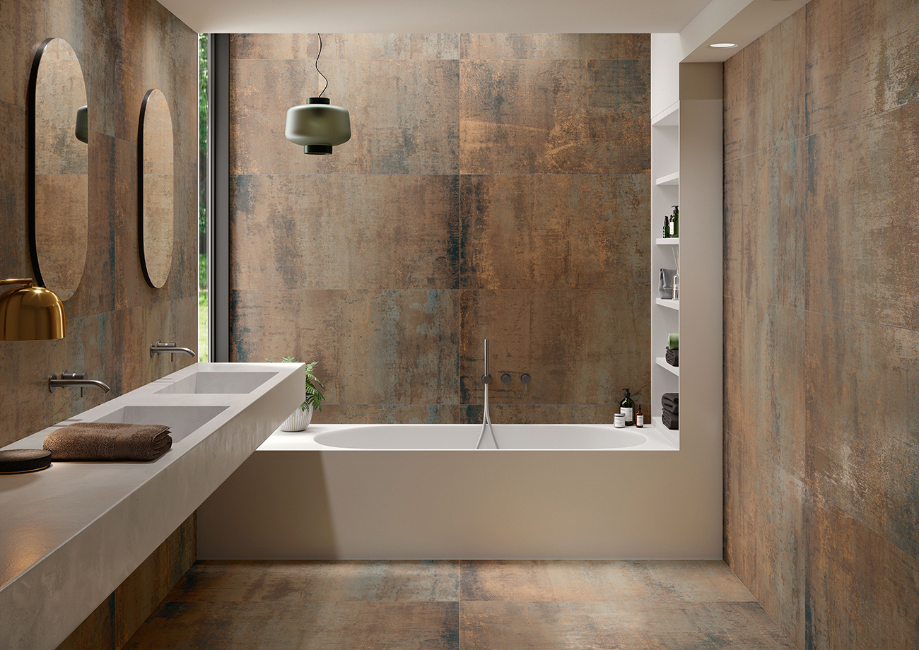 Con su variación V3, la serie Metalo presenta ligeras diferencias entre las piezas, lo que añade un dinamismo visual y profundidad en los espacios. Esta variación proporciona un efecto de movimiento que recuerda las texturas cambiantes del metal oxidado o pulido, haciendo que cada superficie sea única y vibrante.