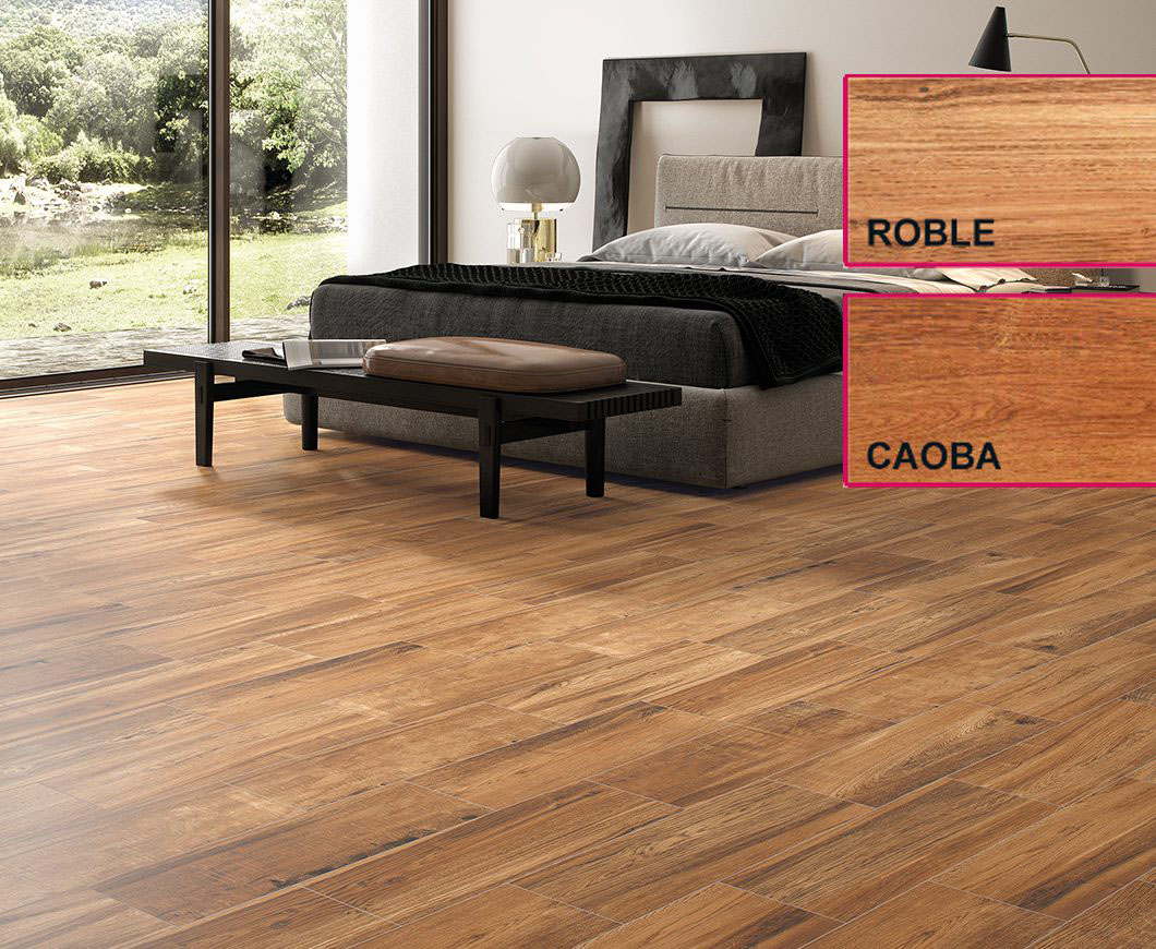 12,08 € – 12,48 € / m2 (IVA Incluido)La Serie MIRANDELA es un azulejo gres de pasta roja imitación madera con acabado mate. Esta disponible en formato 20.5×61.5 y en colores roble y caoba. Impreso en diferentes gráficas.