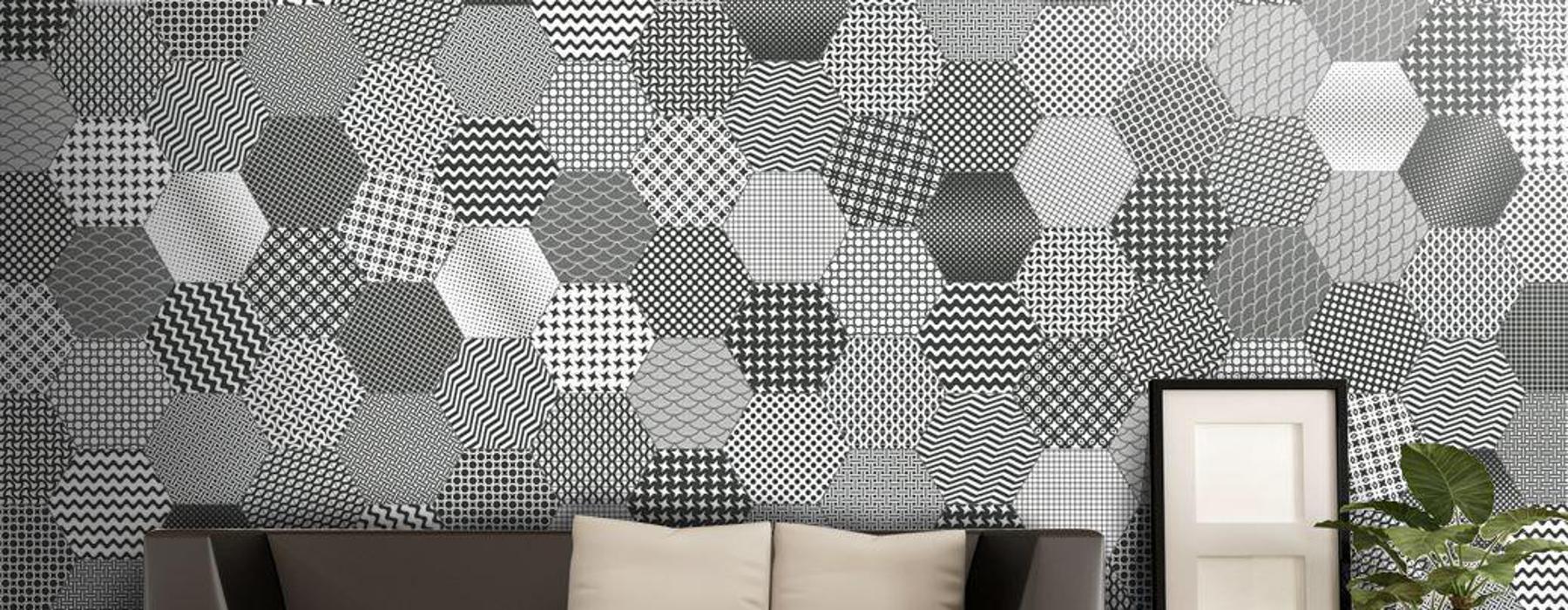 Serie MOMA WHITE . Azulejo porcelánico tipo hidráulico en formato 22×25 hexagonal, presenta un acabado mate.