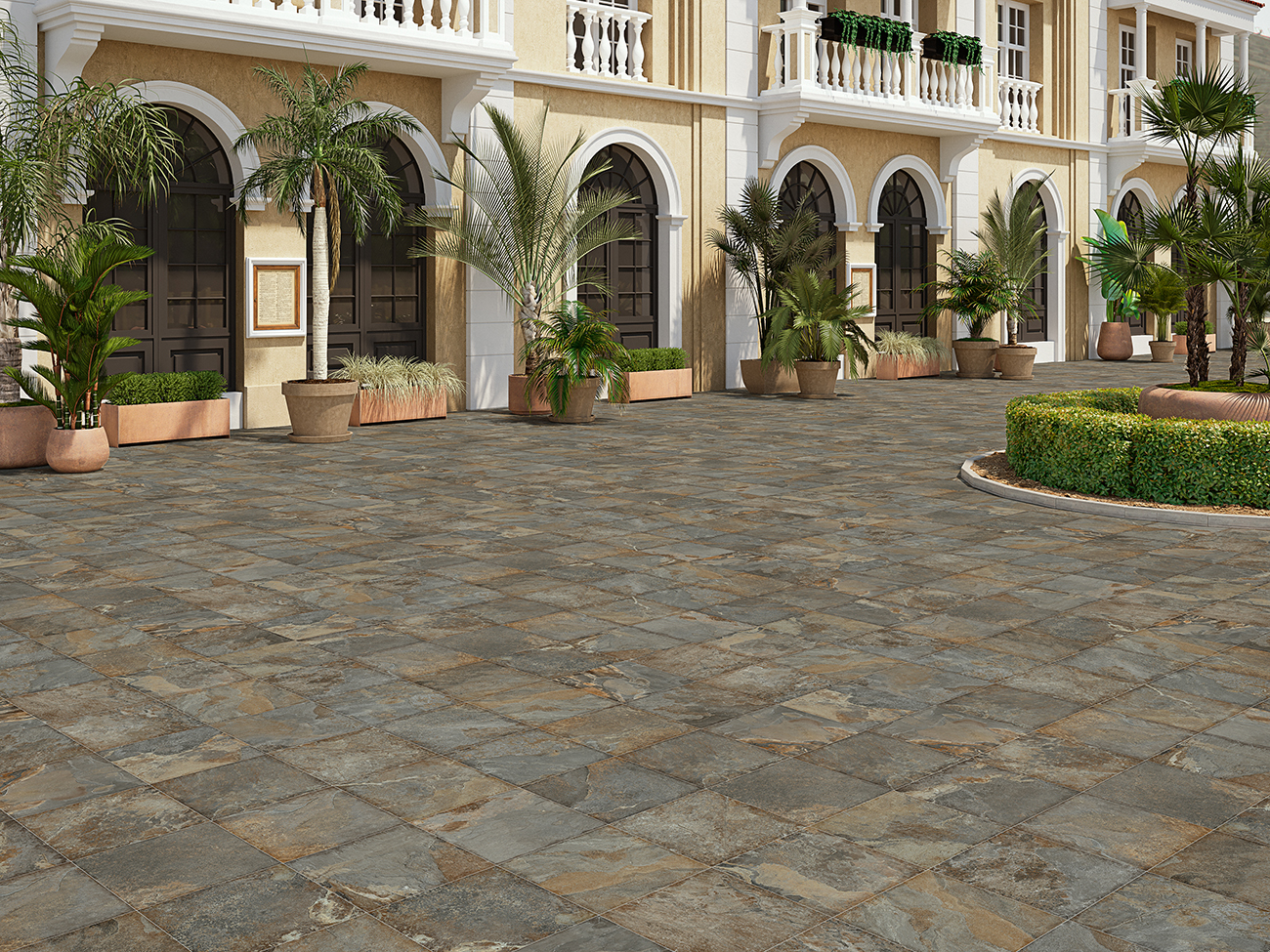 La destonificación V3 de la serie Montego añade un grado significativo de variación entre las piezas, replicando la diversidad natural de los materiales rústicos, lo que otorga una apariencia dinámica y auténtica al pavimento. Esta característica es perfecta para quienes buscan crear ambientes con una estética rústica pero viva, llena de matices y detalles.