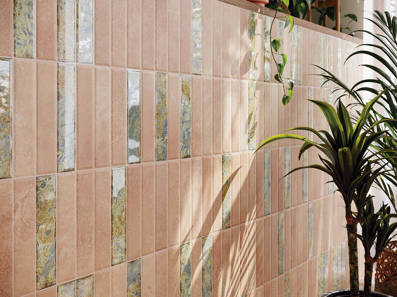 Fabricada con la innovadora DDG Technology, cada pieza en formato 6×24,5 cm cuenta con 64 caras diferentes y una destonificación V4 Considerable, lo que asegura variaciones visuales únicas y un acabado dinámico en cada instalación. Sus colores, Ocean, Marine, Alpine y Gold, se inspiran en las tintas reactivas utilizadas en la cerámica tradicional, recreando tonos vivos como verdes, azules, blancos y ocres que aportan frescura y originalidad a cualquier espacio.