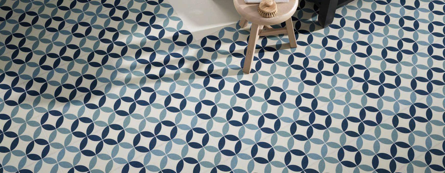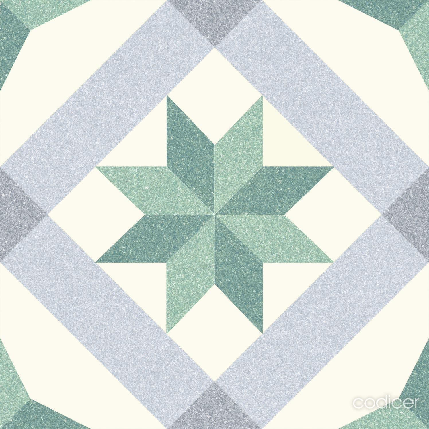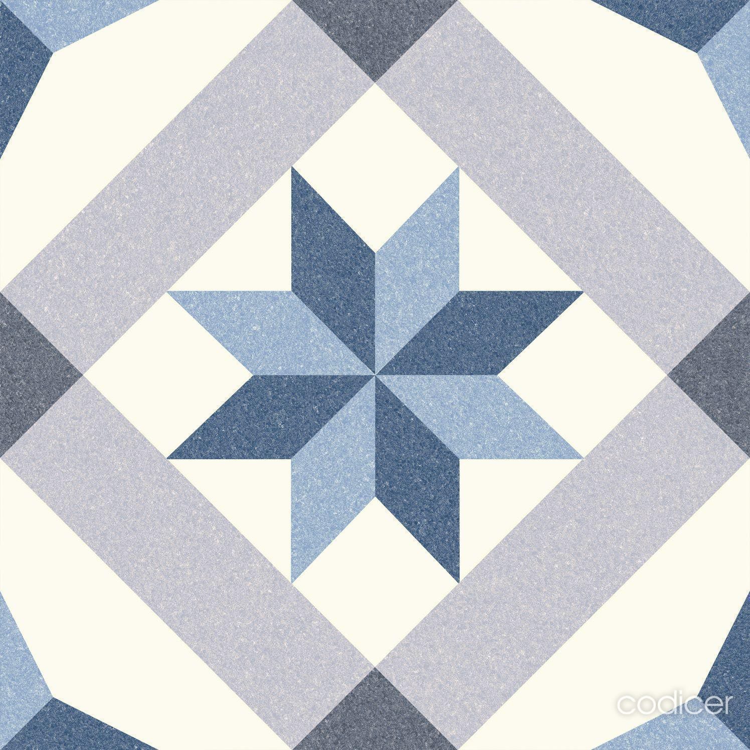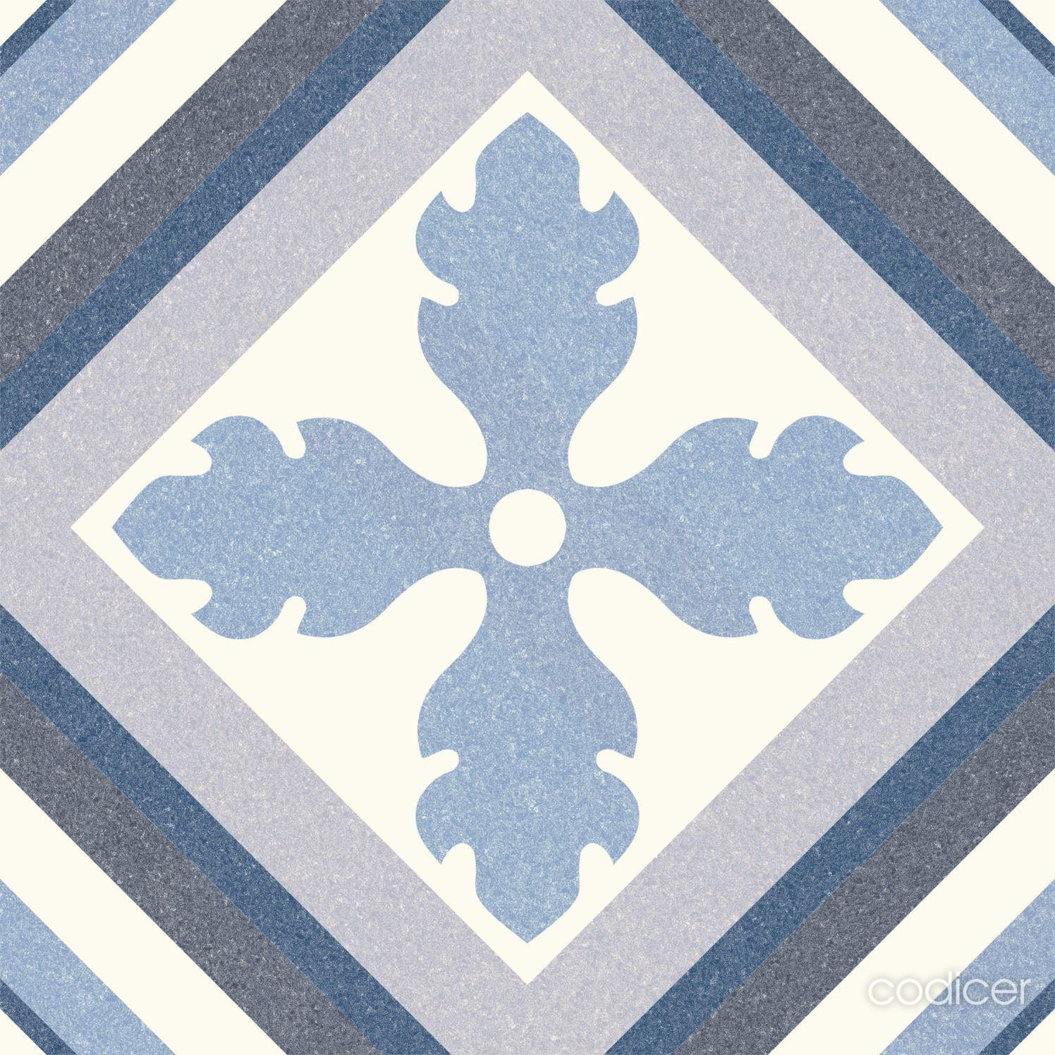Serie Rivera. Azulejo Porcelánico imitación hidráulico en formato 25×25, Presenta un acabado mate.