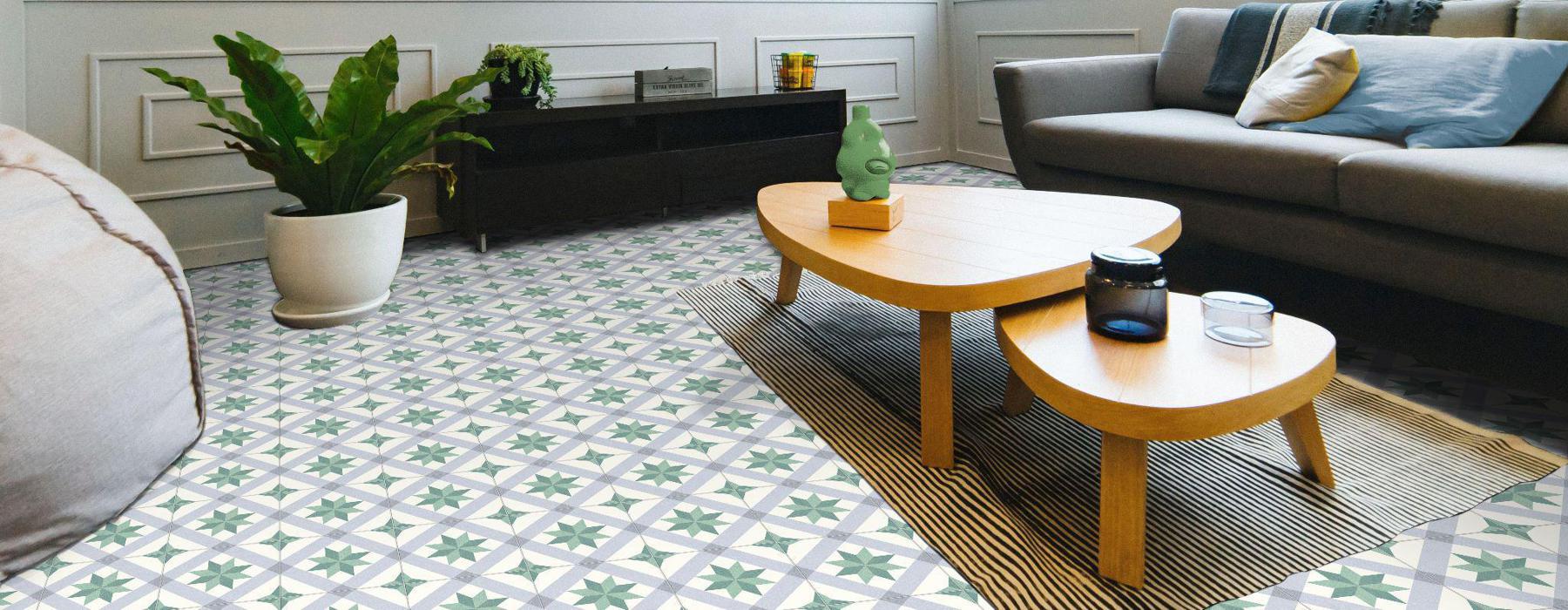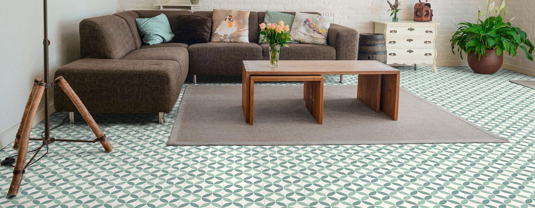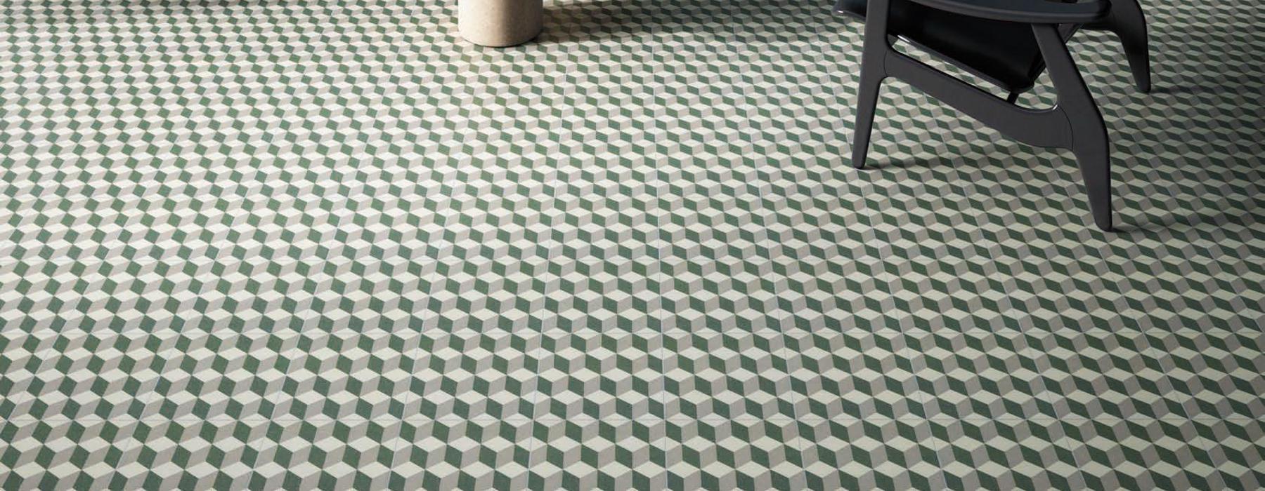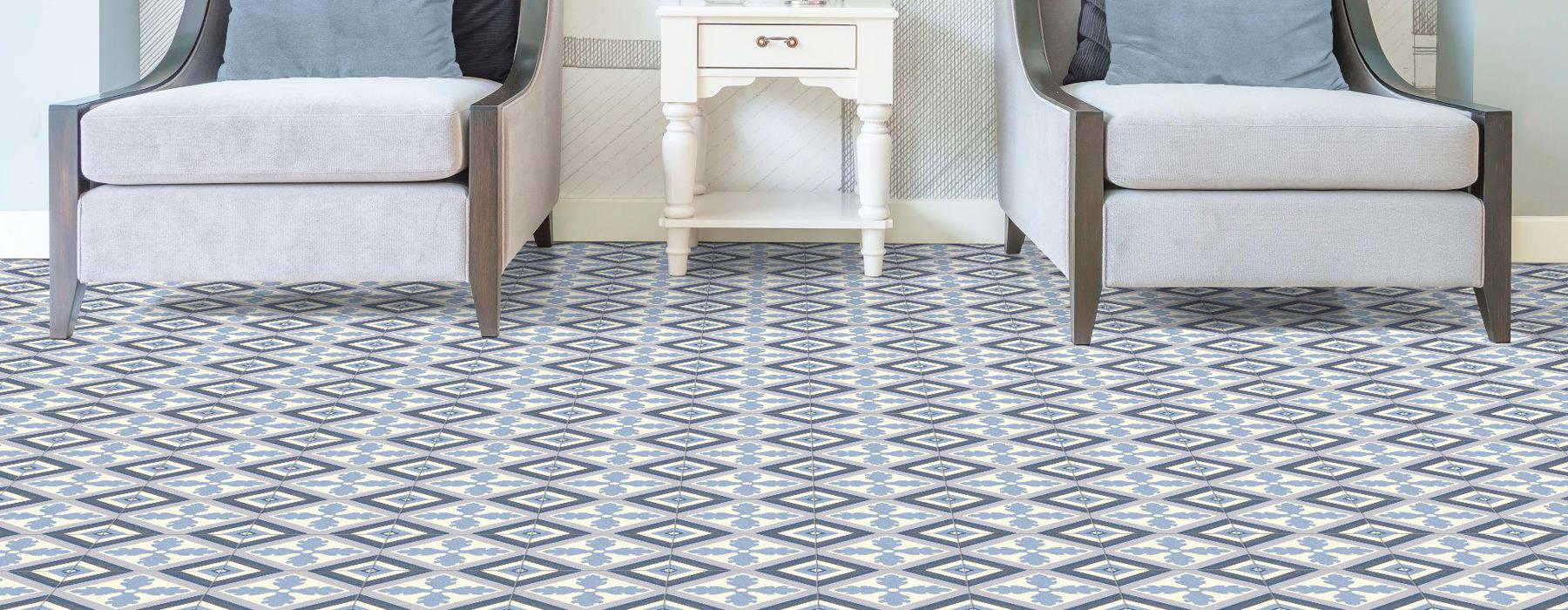 Serie Rivera. Azulejo Porcelánico imitación hidráulico en formato 25×25, Presenta un acabado mate.