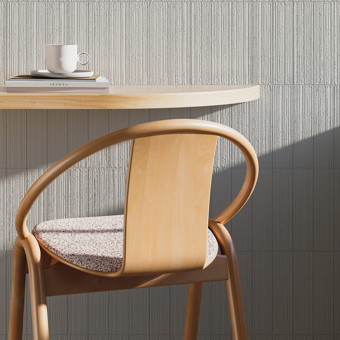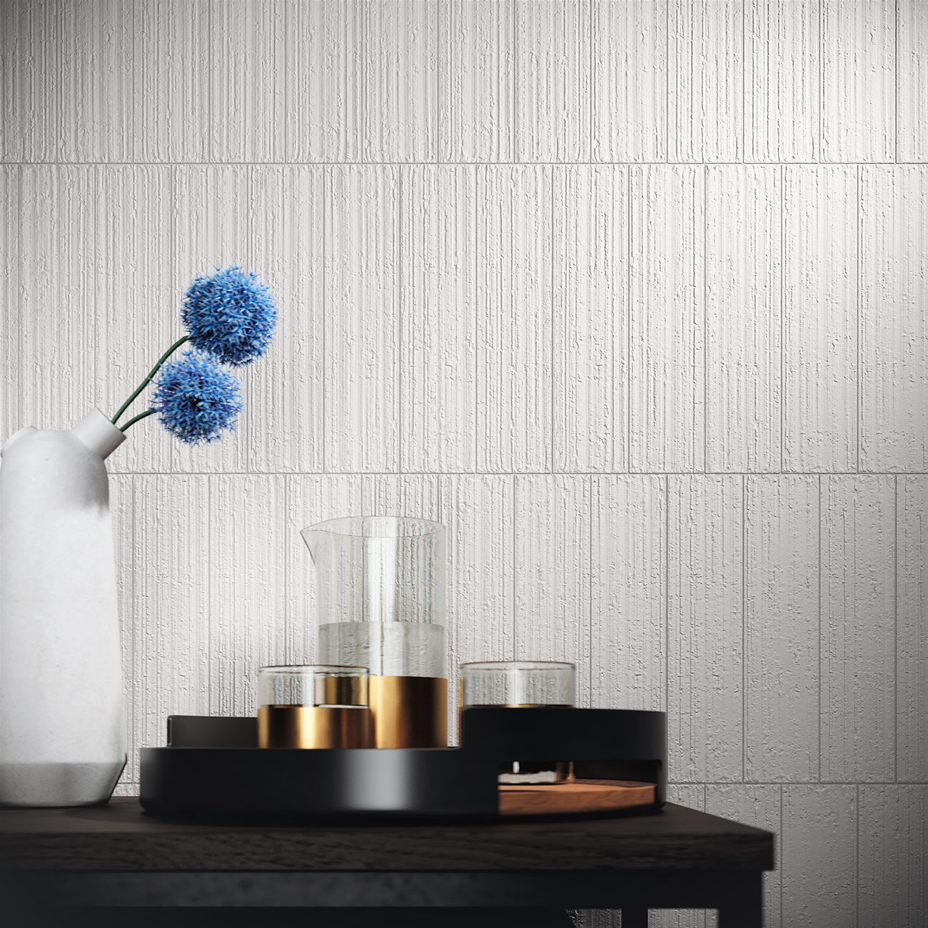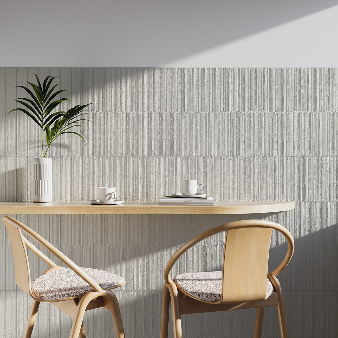 Es una colección compuesta por 5 colores en acabado mate. Su tacto es ligeramente rugoso y recuerda al de una pared de yeso. Sus bordes son perfectamente rectos. Su superficie está surcada por multitud de líneas irregulares y paralelas y salpicada de agujeritos que le dan el aspecto de una baldosa klinker fabricada mediante el sistema de extrusión.