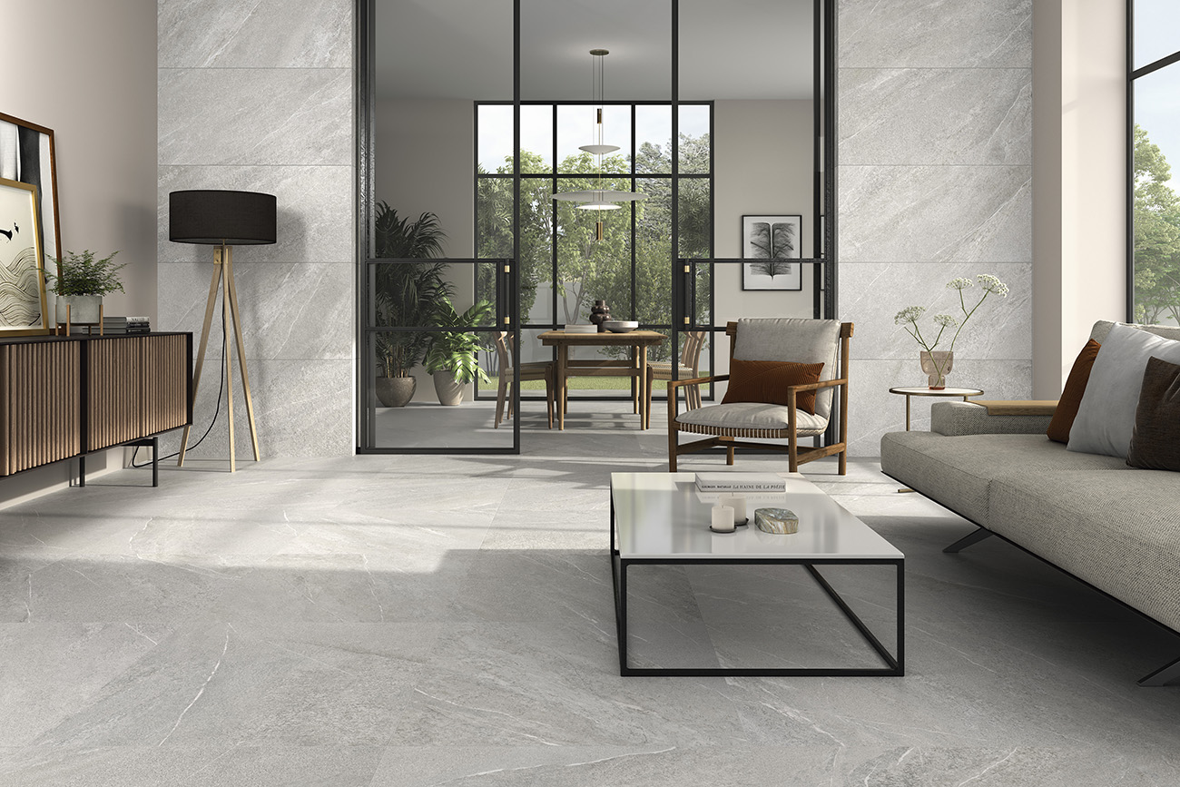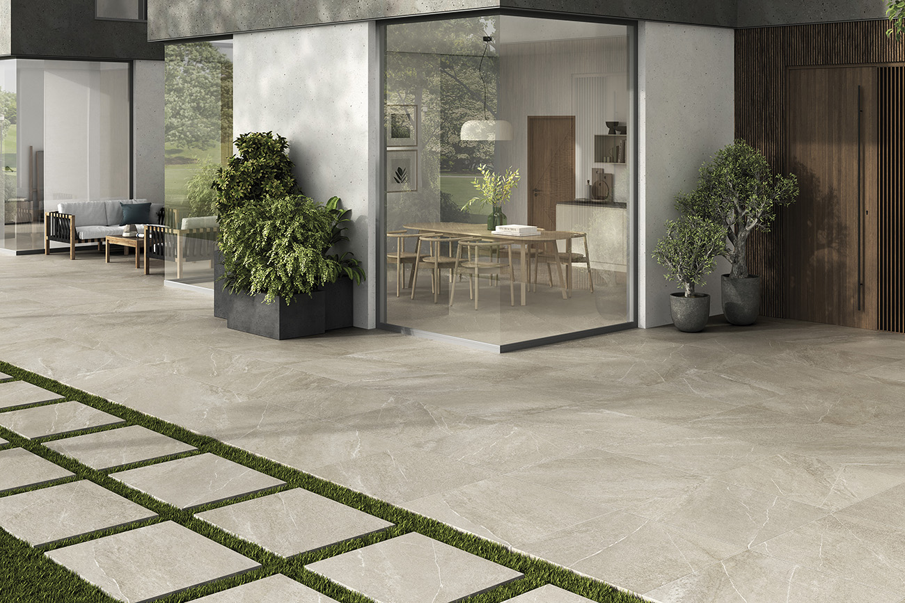 Los colores grey, ivory y natural ofrecen una paleta de tonos neutros que capturan la esencia de la piedra natural, añadiendo un toque orgánico y sofisticado a cualquier espacio. Los acabados mate rectificados aseguran una instalación precisa y continua, mientras que las propiedades antideslizantes ofrecen seguridad en áreas propensas a la humedad, como baños, terrazas y alrededor de piscinas.