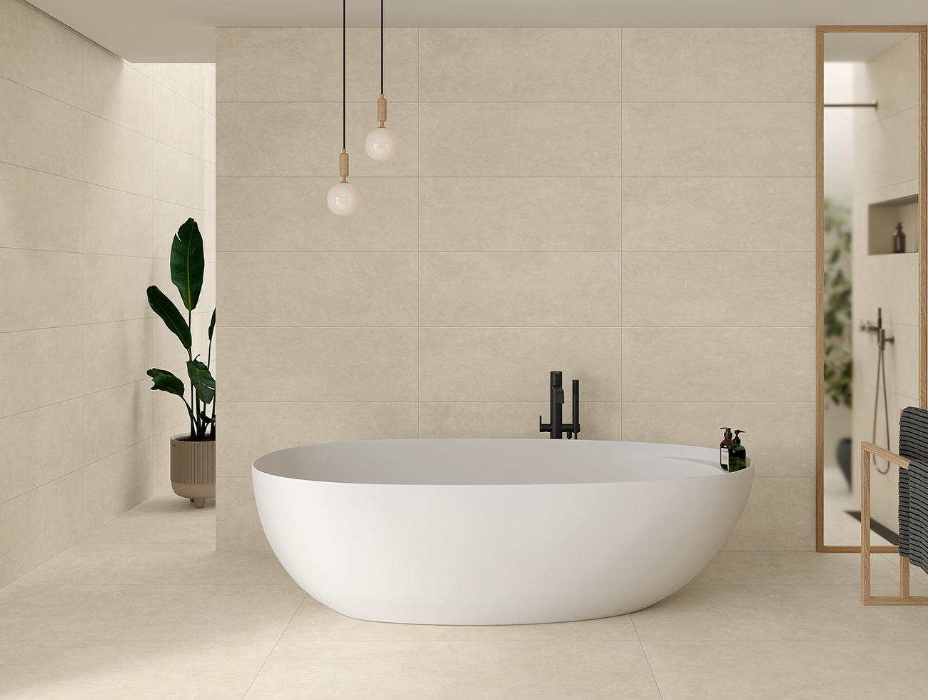 El revestimiento en pasta blanca rectificada, en formato 33,3×90 cm, complementa perfectamente los pavimentos de la colección, permitiendo una continuidad visual y estética entre suelos y paredes. Este revestimiento ofrece una excelente resistencia y durabilidad, características propias del porcelánico de alta calidad.