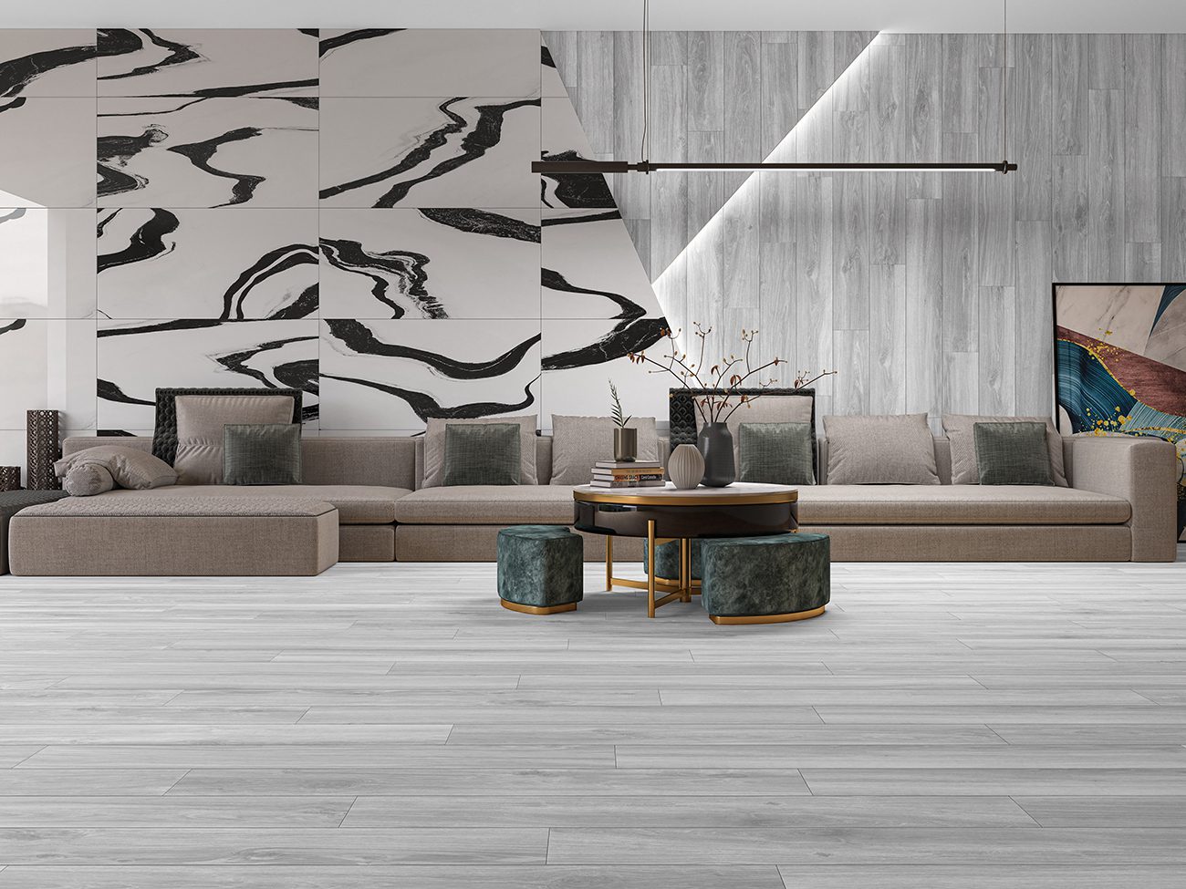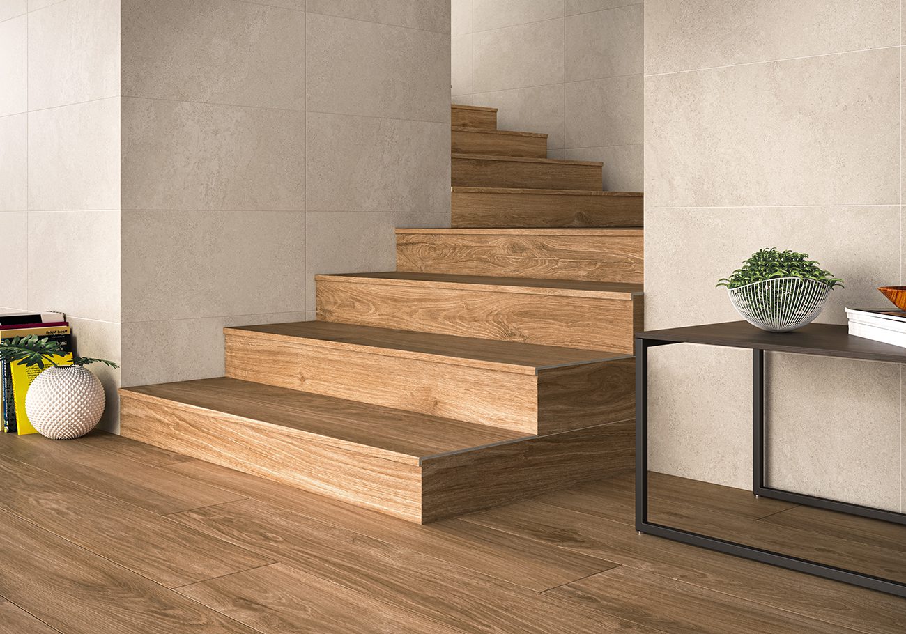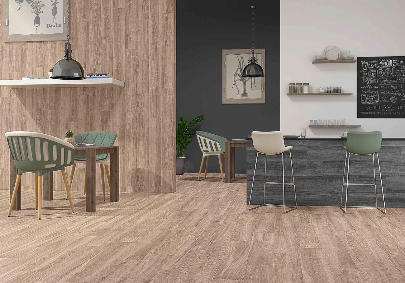 Aporta todas las ventajas de la madera natural gracias al porcelánico pero sin los inconvenientes de esta.