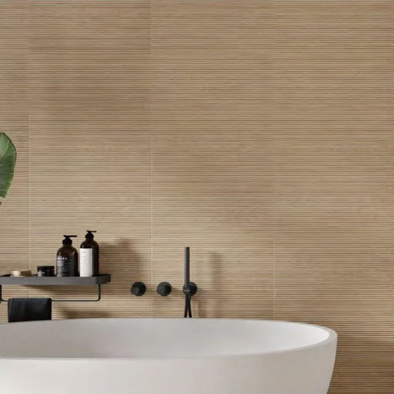 El relieve imitación madera de la serie Woodline no solo aporta una estética natural y detallada, sino que también genera una sensación táctil agradable, añadiendo dinamismo y elegancia a las paredes. Este revestimiento es ideal para crear ambientes acogedores en espacios como salones, baños, cocinas o áreas comerciales, donde el diseño y la funcionalidad son clave.