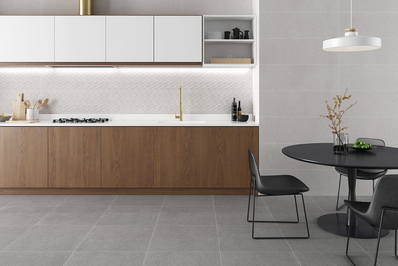 Los colores blanco, perla y gris proporcionan una amplia gama cromática que abarca desde tonos claros y luminosos hasta matices oscuros y sofisticados, permitiendo una gran flexibilidad decorativa. Estos tonos neutros hacen que la serie Dicot se adapte a cualquier estilo de diseño, ya sea moderno, minimalista o industrial, brindando un pavimento que complementa perfectamente cualquier tipo de mobiliario y decoración.