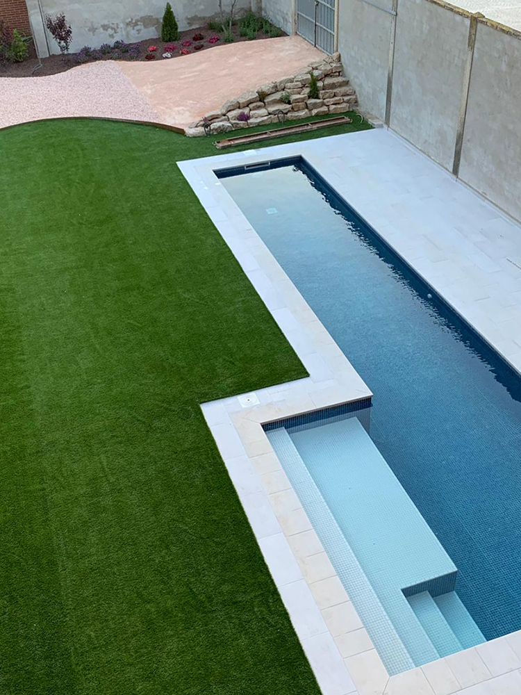 Gresite para piscina en color Azul Piscina de 2.5×2.5 en malla de silicona.