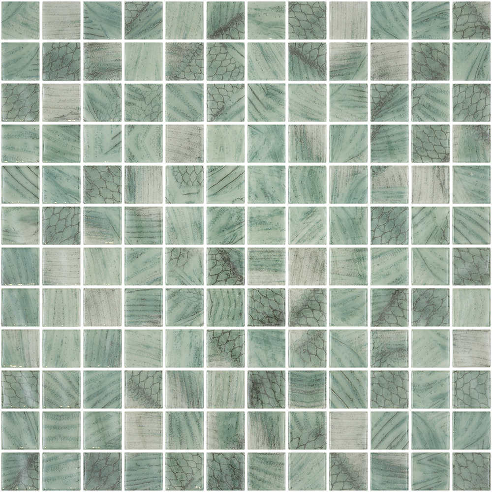 Gresite para piscina en colores verdes de 2.5×2.5 en malla de silicona.