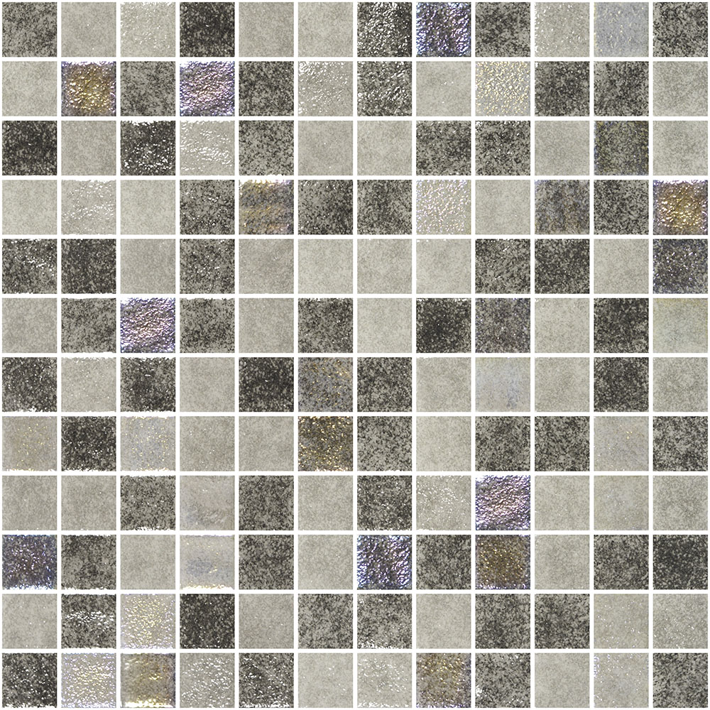 Gresite para piscina en colores grises nacarados de 2.5×2.5 en malla de silicona.